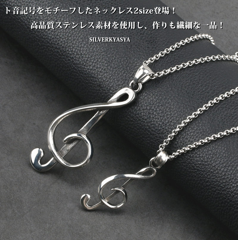 ト音記号をモチーフしたお洒落なネックレス2サイズ登場!