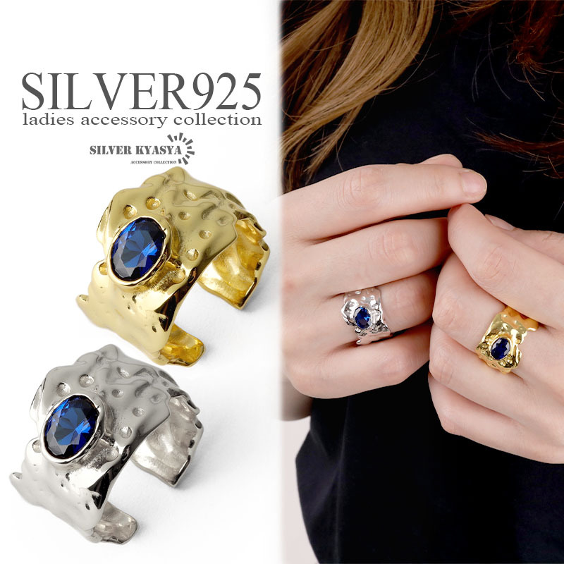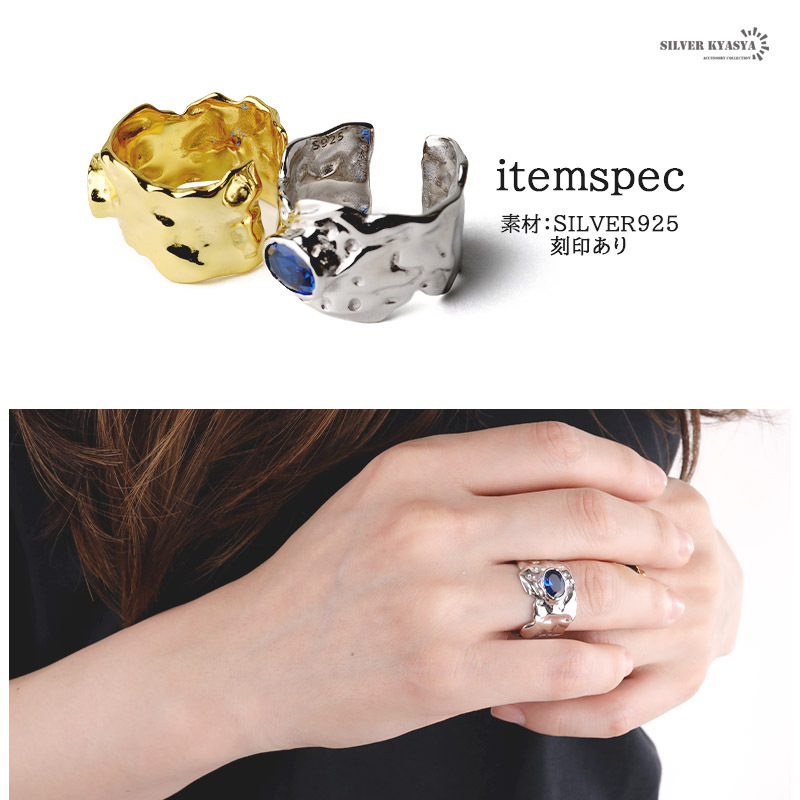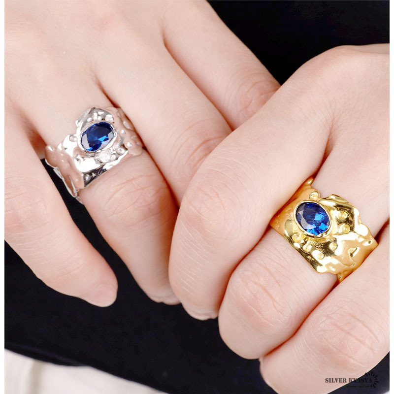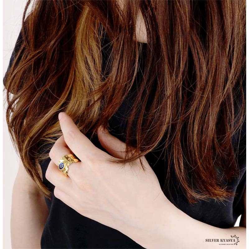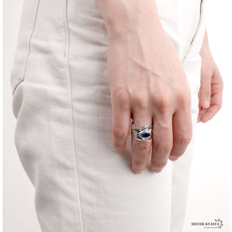 太幅のリングに青色のストーンがお洒落な雰囲気を演出します。