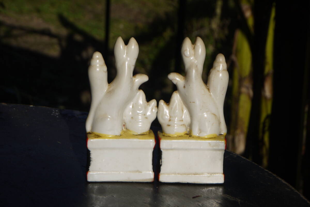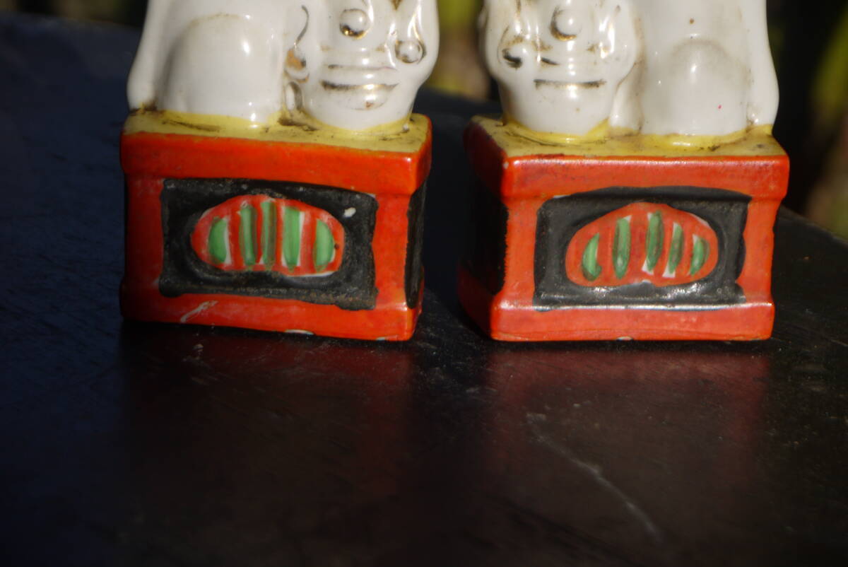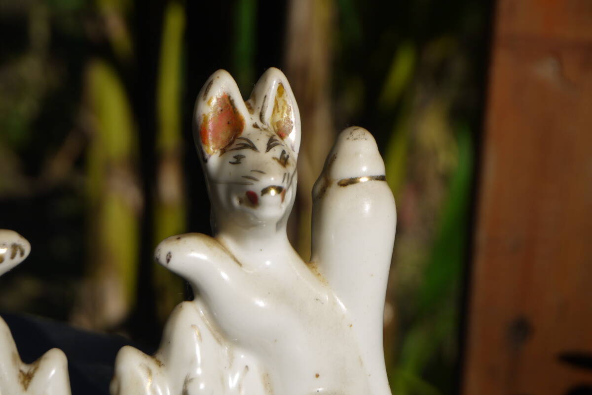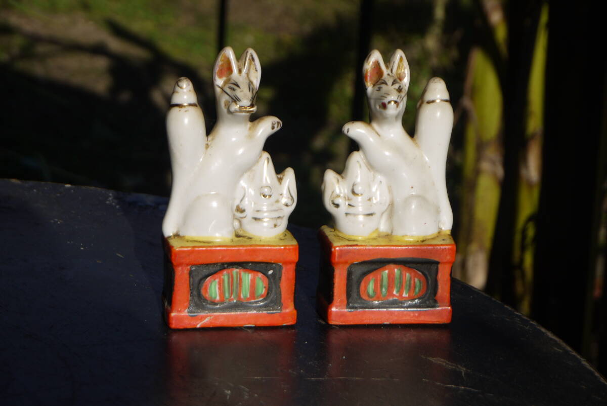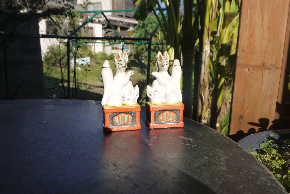 ★【H41119】稲荷 一対 ■ 4寸 高さ 12cm ■ 狐 お稲荷さん 神社 陶器 外宮 稲荷神明 アンティーク