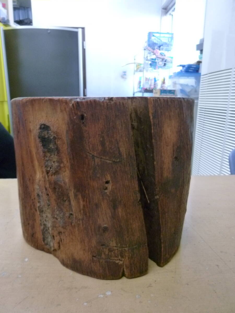 現状品 木材のオブジェ 木の塊 古材 直径約27㎝×高さ約21㎝【V-187】 送料無料(北海道沖縄・離島・佐川急便中継料金がかかる地域は除く)