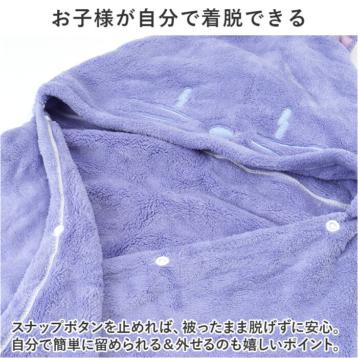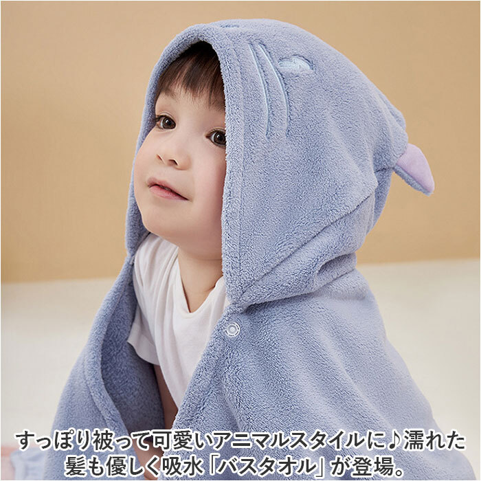 | 商品説明 | ・・すっぽり被って可愛いアニマルスタイルに♪濡れた髪も優しく吸水「バスタオル」が登場。 ・【サッと着用出来てストレスフリー◎】 ・バタバタしがちなお風呂上がりやプール上がりに、サッと着用できるマントタイプ!湯冷めや汗のべたつきを防ぎ、ストレスフリー◎ ・【吸水速乾性のあるふんわり素材】 ・柔らかく肌に優しい素材を使用。お子様も思わず触れたくなる気持ちいい触り心地♪水気や汗を素早く吸収し、乾きが早いのも嬉しいポイント。 ・【お子様が自分で着脱できる】 ・スナップボタンを止めれば、被ったまま脱げずに安心。自分で簡単に留められる&外せるのも嬉しいポイント。 ・【日よけにもなるフードつき】 ・髪の毛の水分も吸収してくれる嬉しいフードつき。日よけにもなるので、プールやビーチなどの水遊びでも快適♪ ・【使えるシーンいろいろ】 ・少し厚めの生地感で、冬でも安心。お風呂後のタオルドライや、スイミング後、水遊び時などで活躍。ひとつあると重宝するアイテム。 ・【お子様と一緒に使えるデザイン】 ・やさしいカラー&シンプルデザインなので、お子様と一緒に使えるデザイン。 |