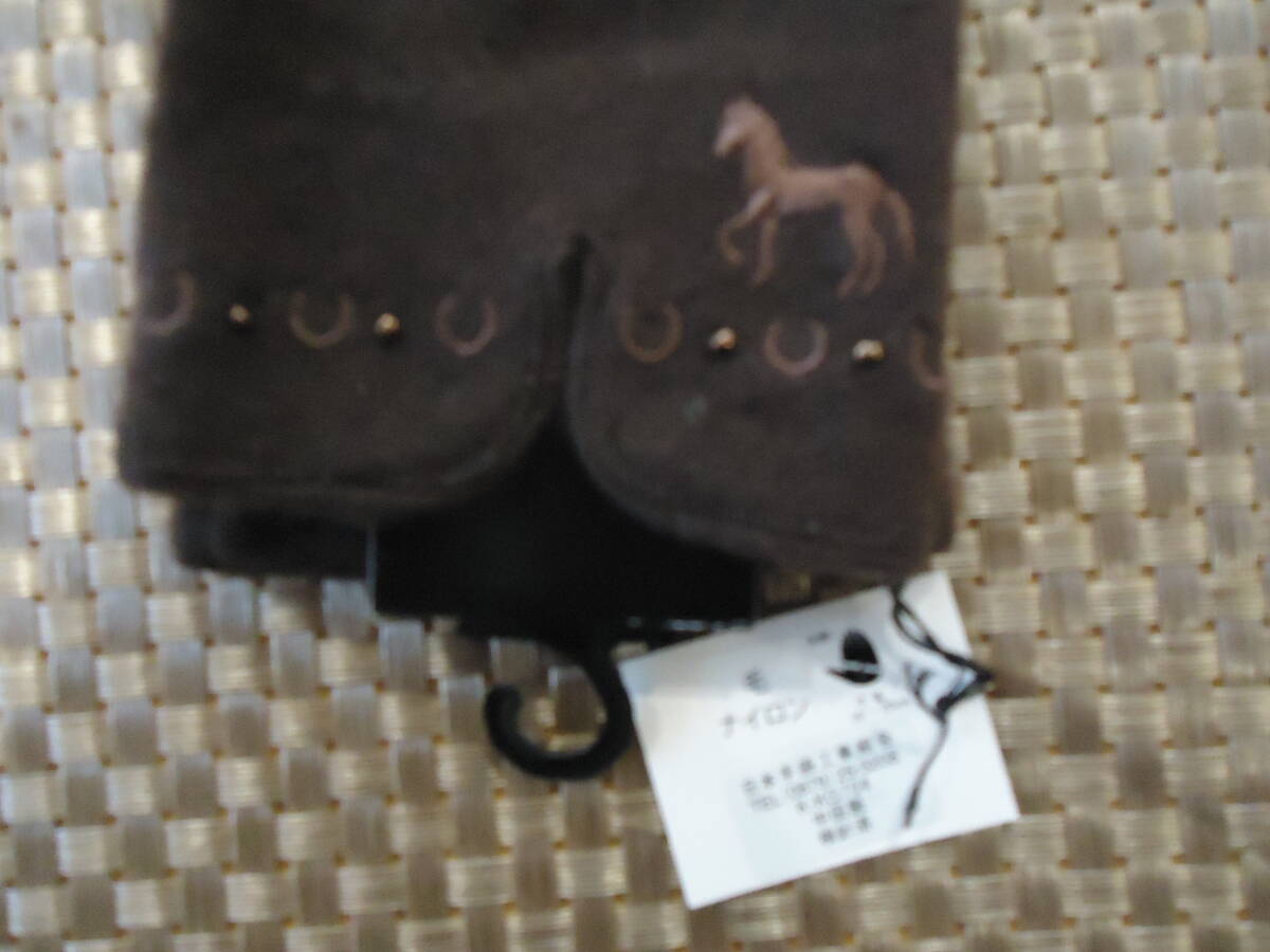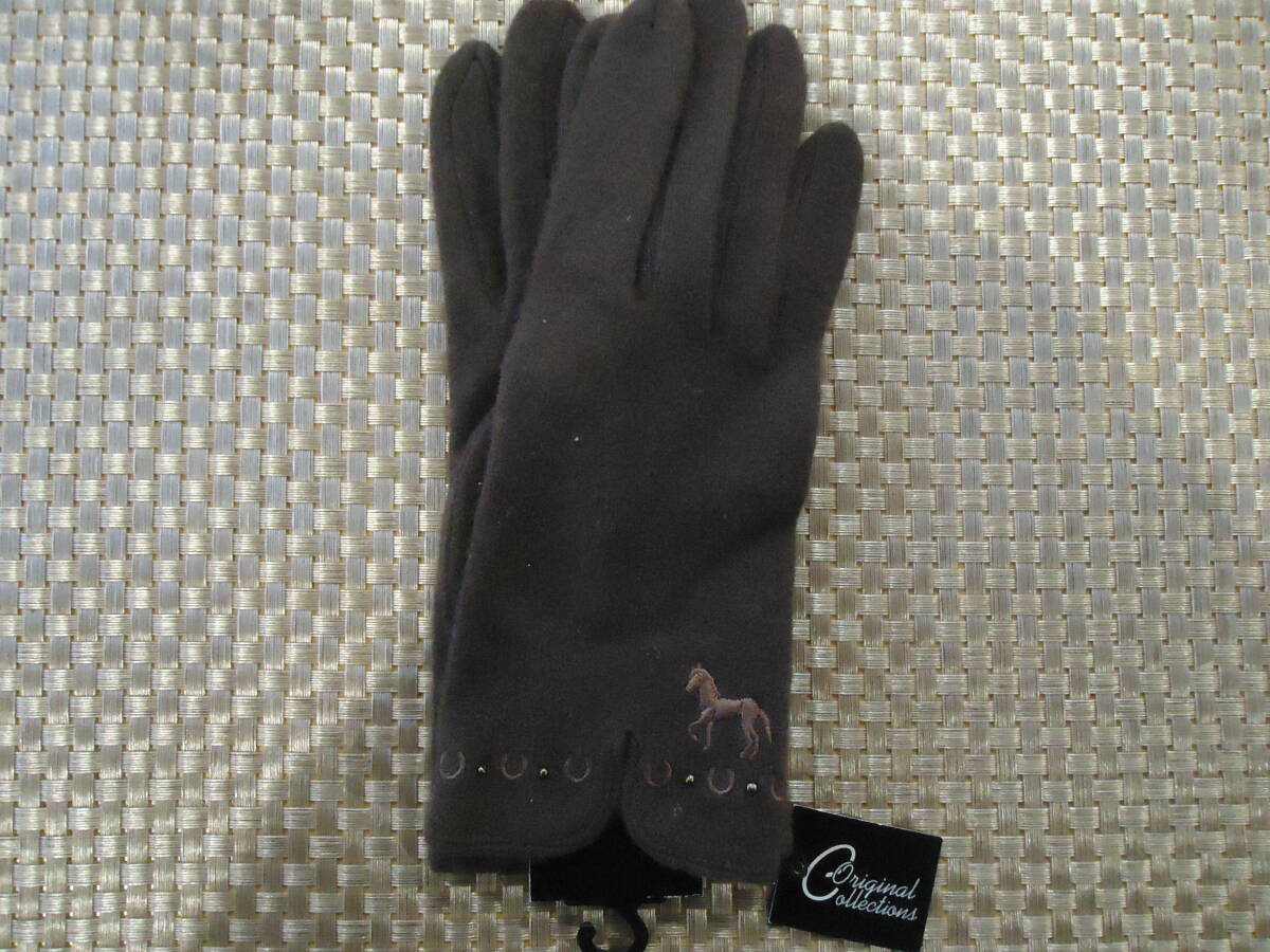 ★レディースホース刺しゅう付きデザイン手袋★新品★ブラウン★