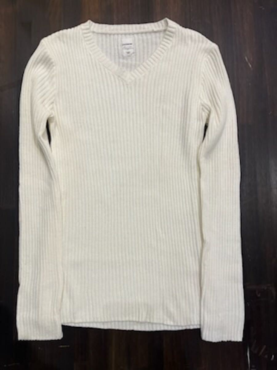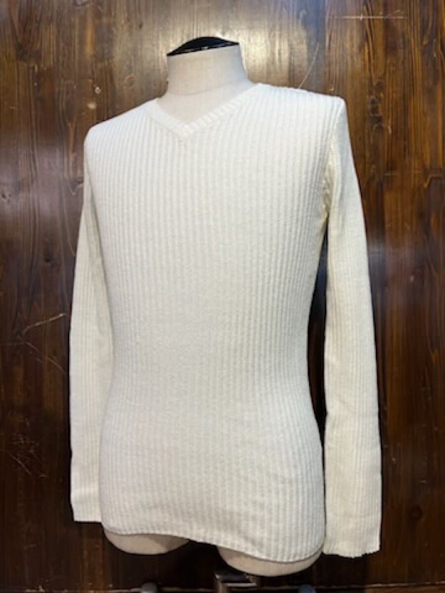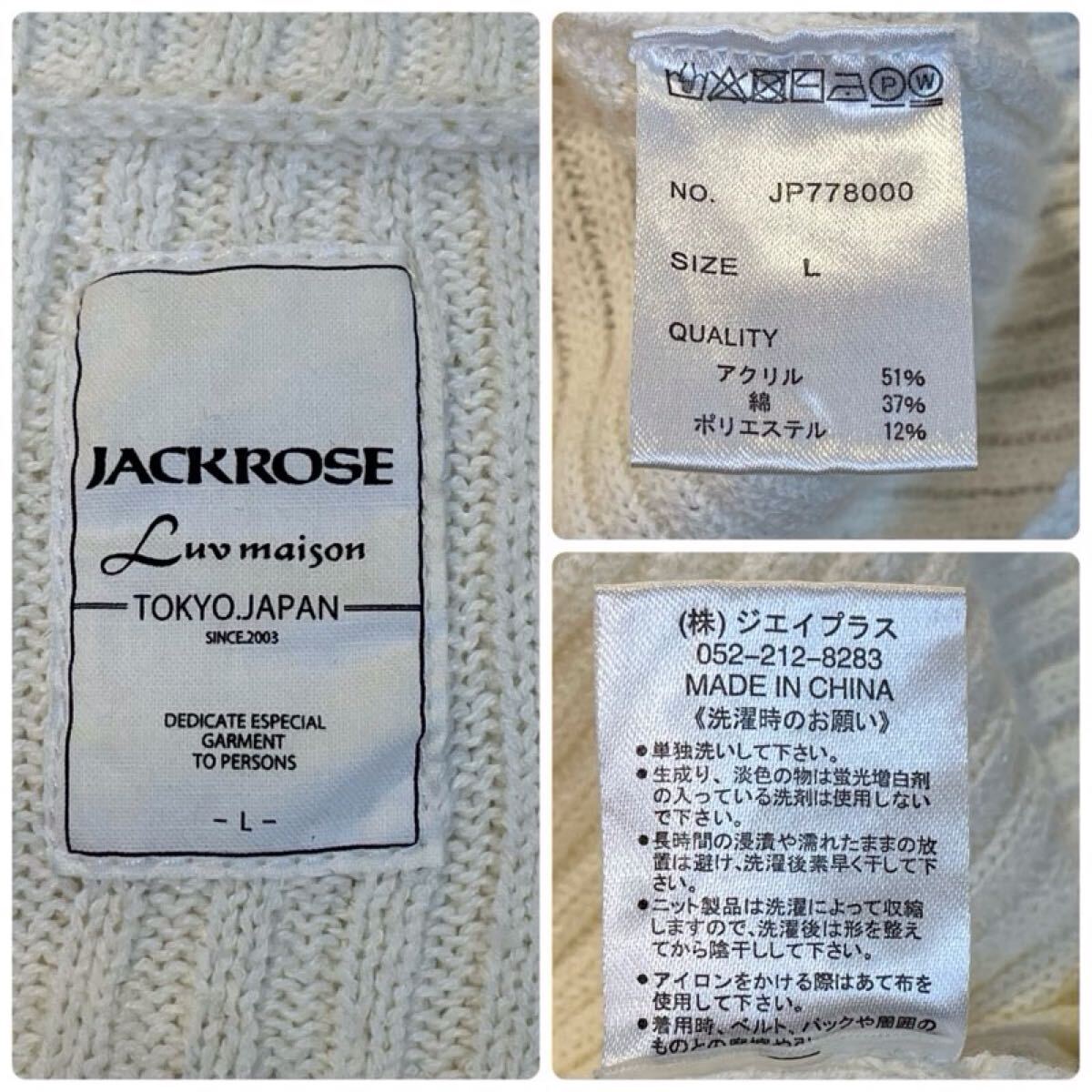 L490 メンズ セーター JACKROSE ジャックローズ 長袖 カットソー 薄手 ホワイト Vネック ロック カジュアル Y2K 古着 / L レターパック発送