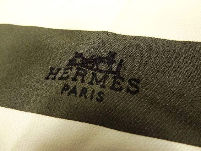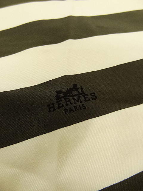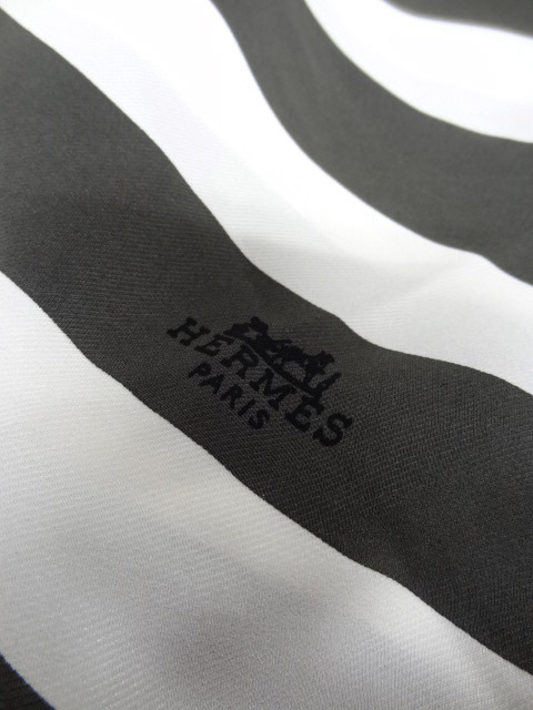 HERMES エルメス フランス製 レア 絹 シルク 白 黒 ボーダー ストライプ 変形 菱形 ダイヤ デザイン スカーフ ショール ストール 総柄 タグ