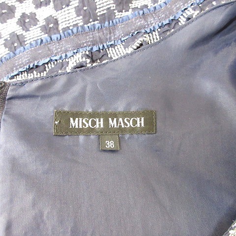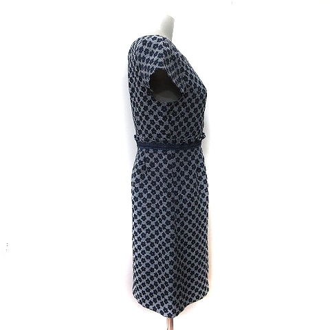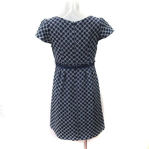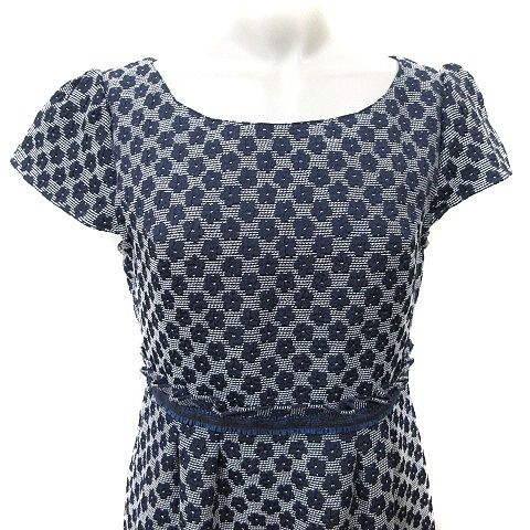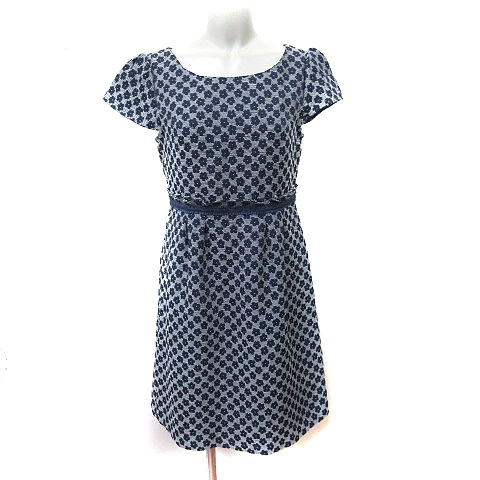 ミッシュマッシュ MISCH MASCH ワンピース ひざ丈 半袖 総柄 38 M 紺 ネイビー /YI レディース
