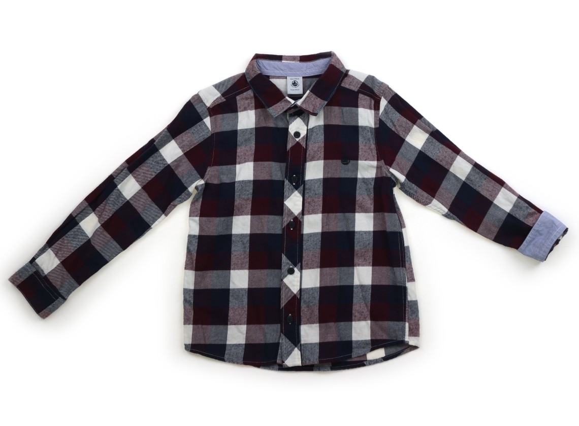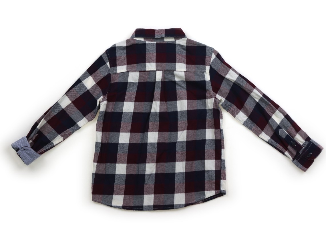 実際のサイズ表記は116cmです。ネルチェック生地です。袖口は折り返すとボーダー生地です。目立つ汚れはありません。
