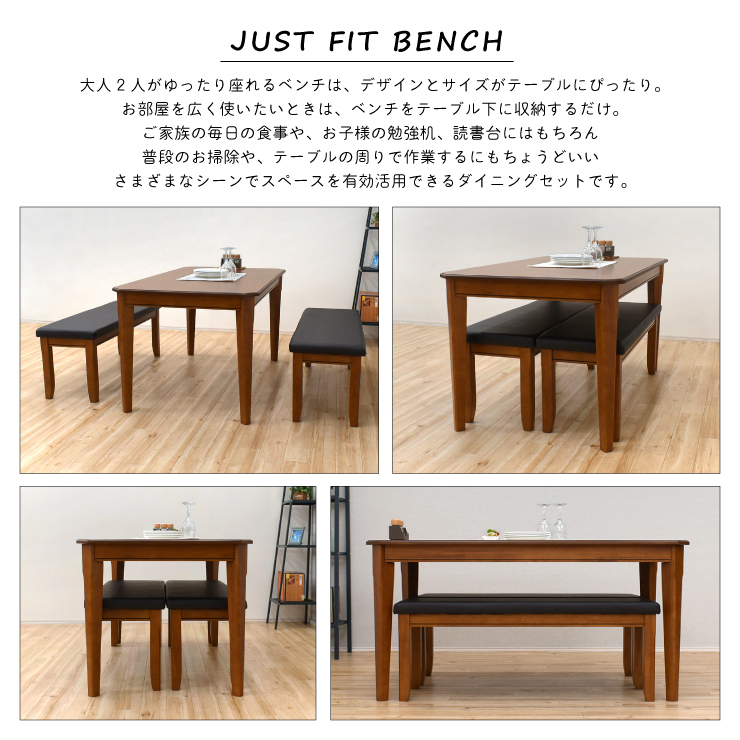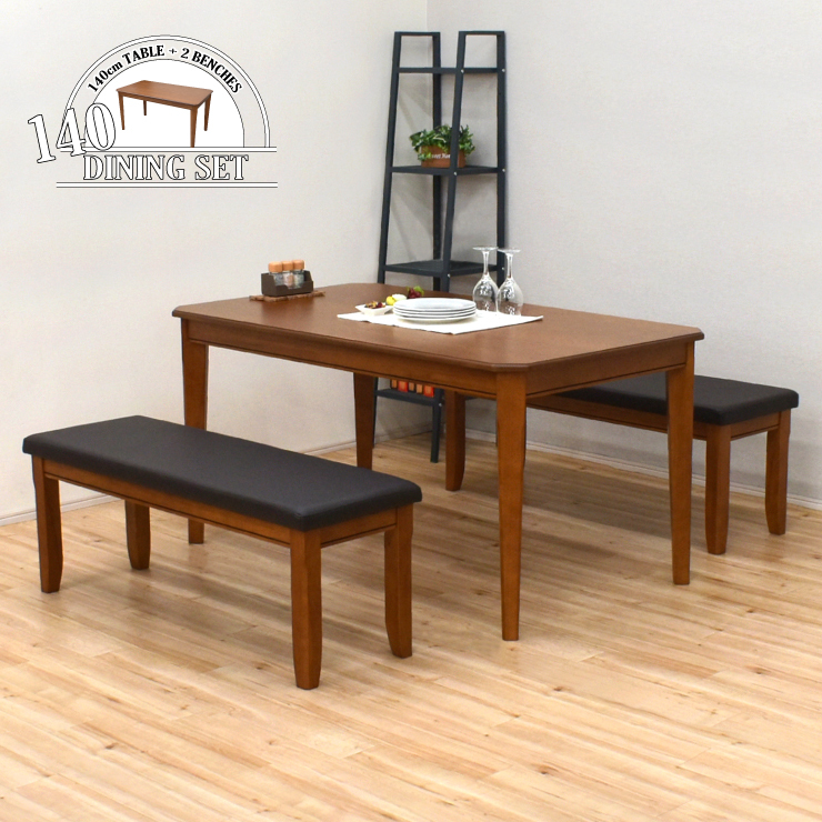 ダイニングテーブル3点セット ベンチ2 4人掛け 幅140cm 木製 クッション burod140-3ben-351-pvc 115ベンチ アウトレット 11s-3k m80hr tw
