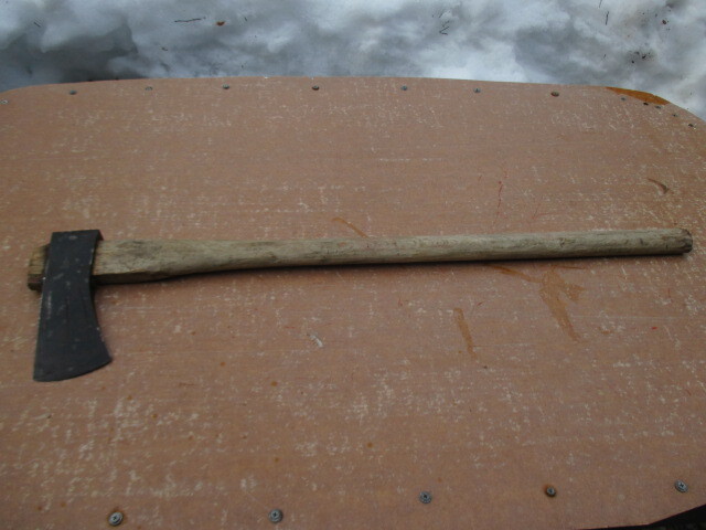 薪割り斧 名入り 中古品錆あり 柄の長さ87cm刃の長さ19.5×8.5cm 古いですが使用頻度少なし ノークレーム、ノーリターンで落札後36時間の初回連絡、5日以内のお支払い商品が届きましたら受け取り連絡お願いします。