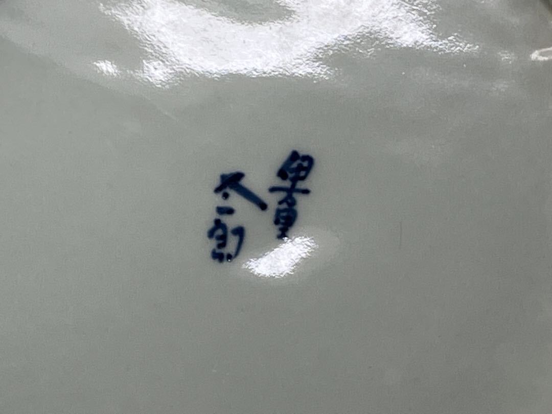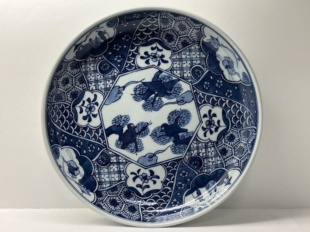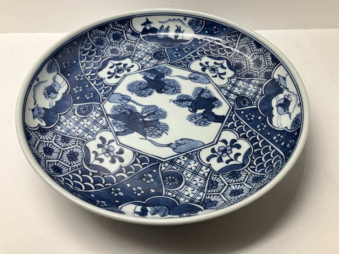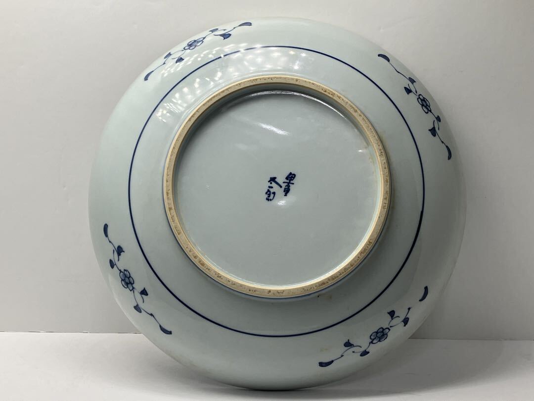 伊万里焼 太一郎窯 大皿 絵皿太一郎窯は気品に満ちた藍鍋島の伝統と美意識を受け継ぎ、手書きの妙に現代的な感覚を取り入れた器づくりに取り組んでいます。伝統技法をしっかりと継承しつつ、現在の生活スタイルや美意識を常に追求しつづけることこそ、歴史ある藍鍋島を次の世代へ受け継ぐ使命と考え、ひとつひとつの作品を手作りしています。(公式ページより抜粋)裏印あり。ブランド 太一郎窯サイズ 直径 約27.5cm 高さ 約5.0cm共箱共布が欠品しておりますので格安でご提供いたします。ヴィンテージ品であることをご理解ください。やや汚れあり
