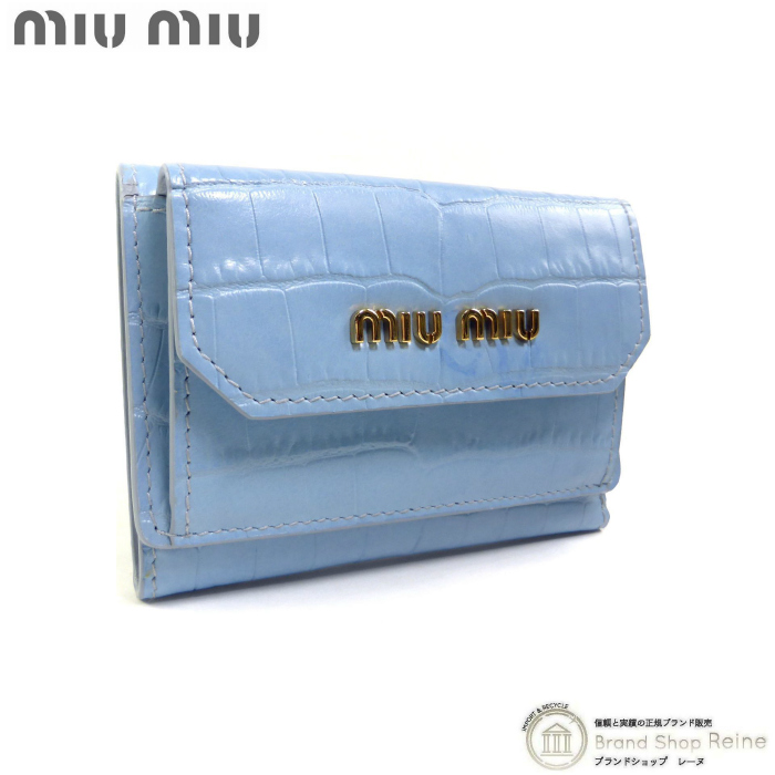 | ミュウミュウ(MIUMIU) クロコ調型押し コンパクト 三つ折り 財布 5MH021 CIELO(中古) |