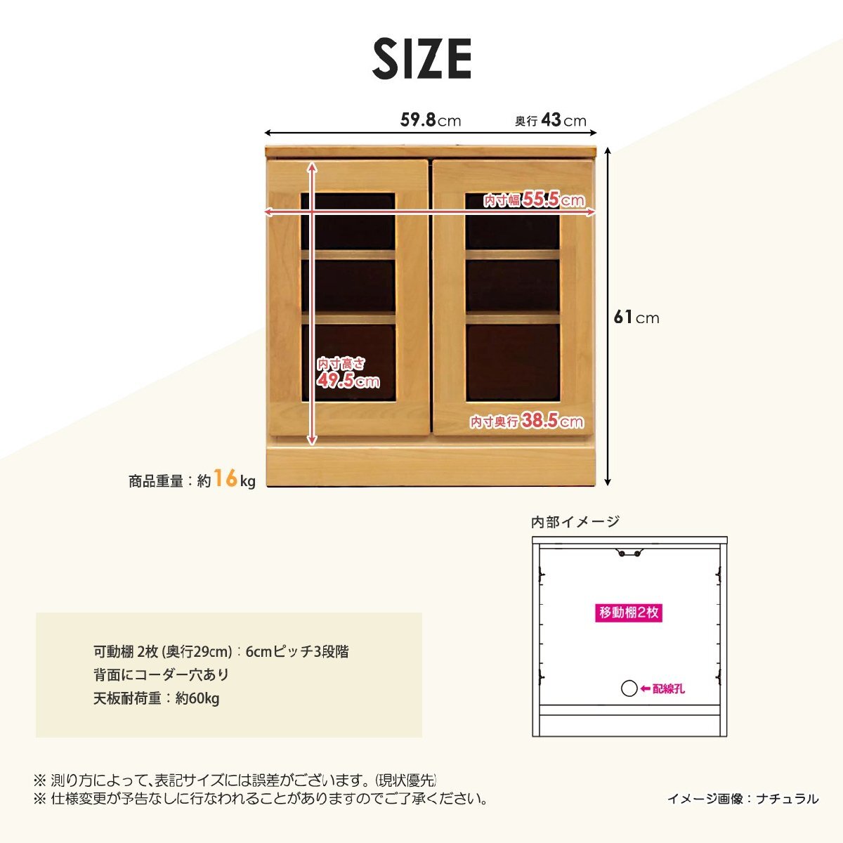 商品サイズ本体:幅59.8×奥行き43×高さ61