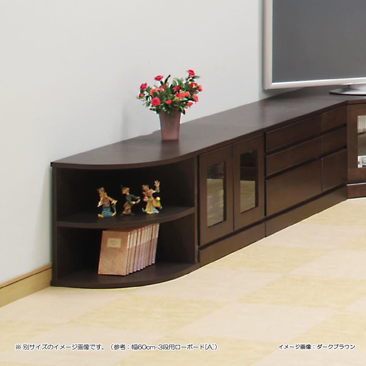 ローボード テレビ台 TV台 ガラス扉 幅60cm 高さ61cm 4段用 収納家具 テレビボード ダークブラウン
