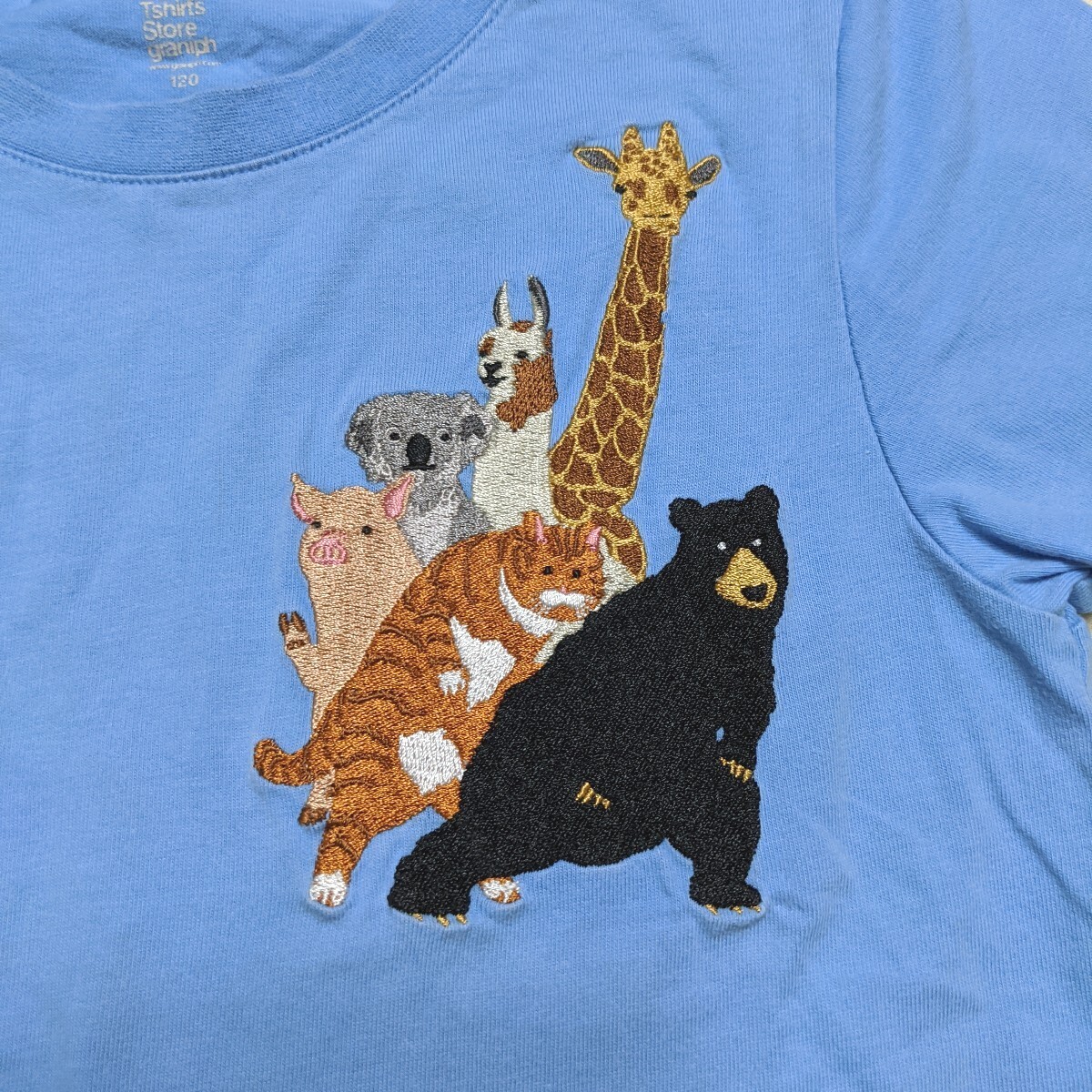 可愛らしい動物の絵柄がデザインされた半袖のTシャツです。