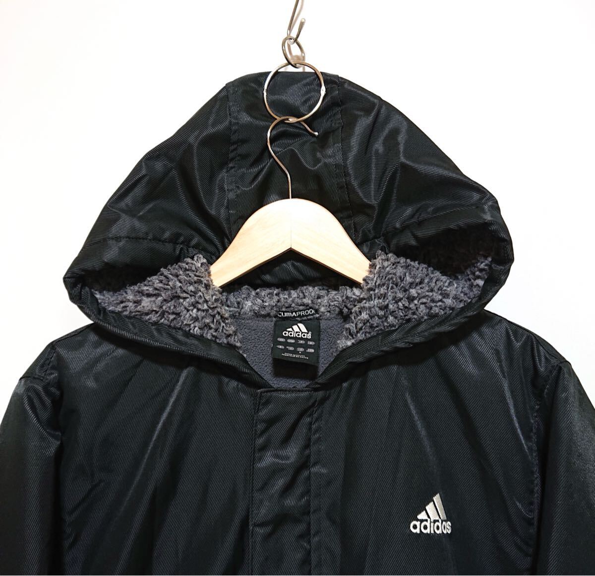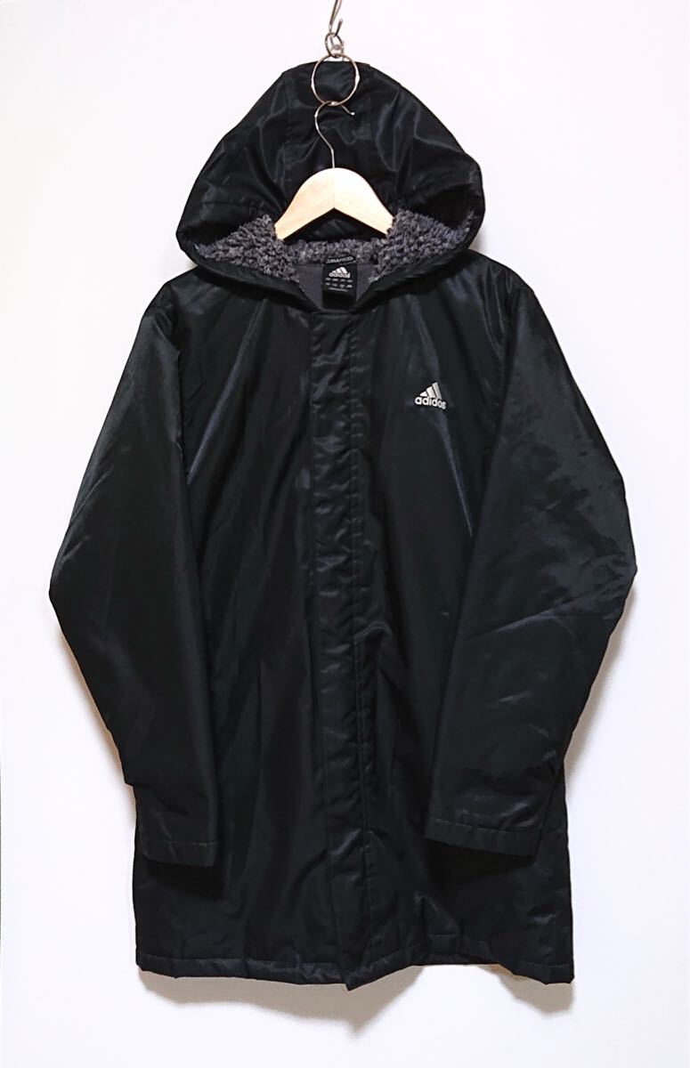 h1783gg adidasアディダス サイズS ベンチコート 中綿ジャケット ブラック メンズ 秋冬アウター フードボア スポーツ 練習 観戦 カジュアル