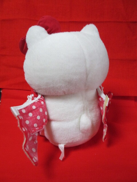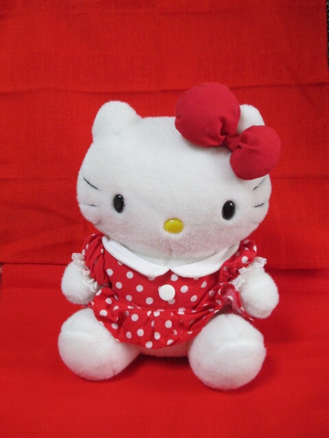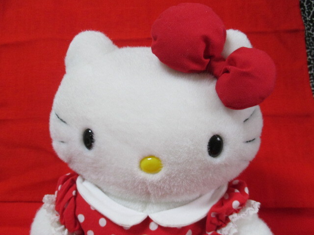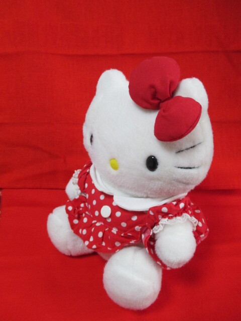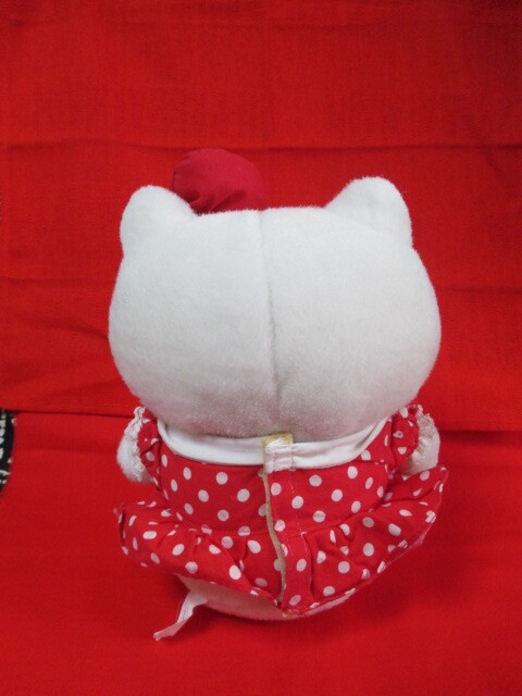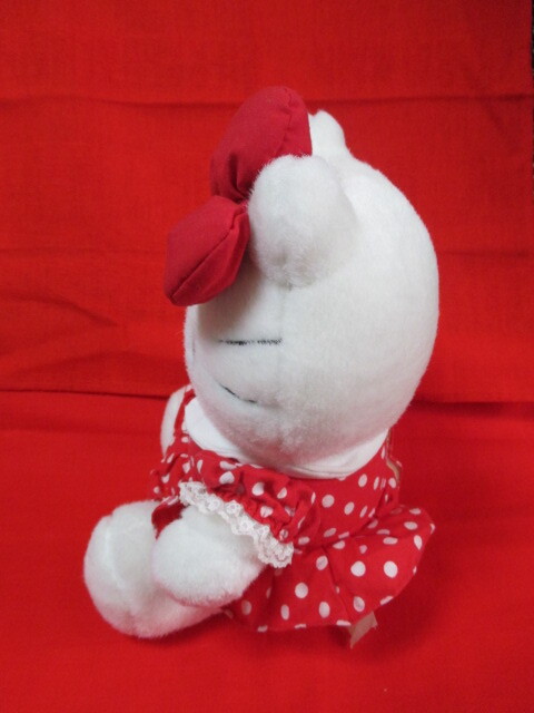 ★激レア!可愛い!ハローキティ サンリオ ぬいぐるみ お着替え出来ます。 水玉柄ワンピース、レースの付いた提灯袖が可愛いです。赤いおリボンもふっくらとしてます。高さ22cm。 カワグチ。 レトロ、 ヴィンテージなお品ですのでタグが劣化しておりますがぬいぐるみはきれいな状態だと思いますのでご了承くださいませ。