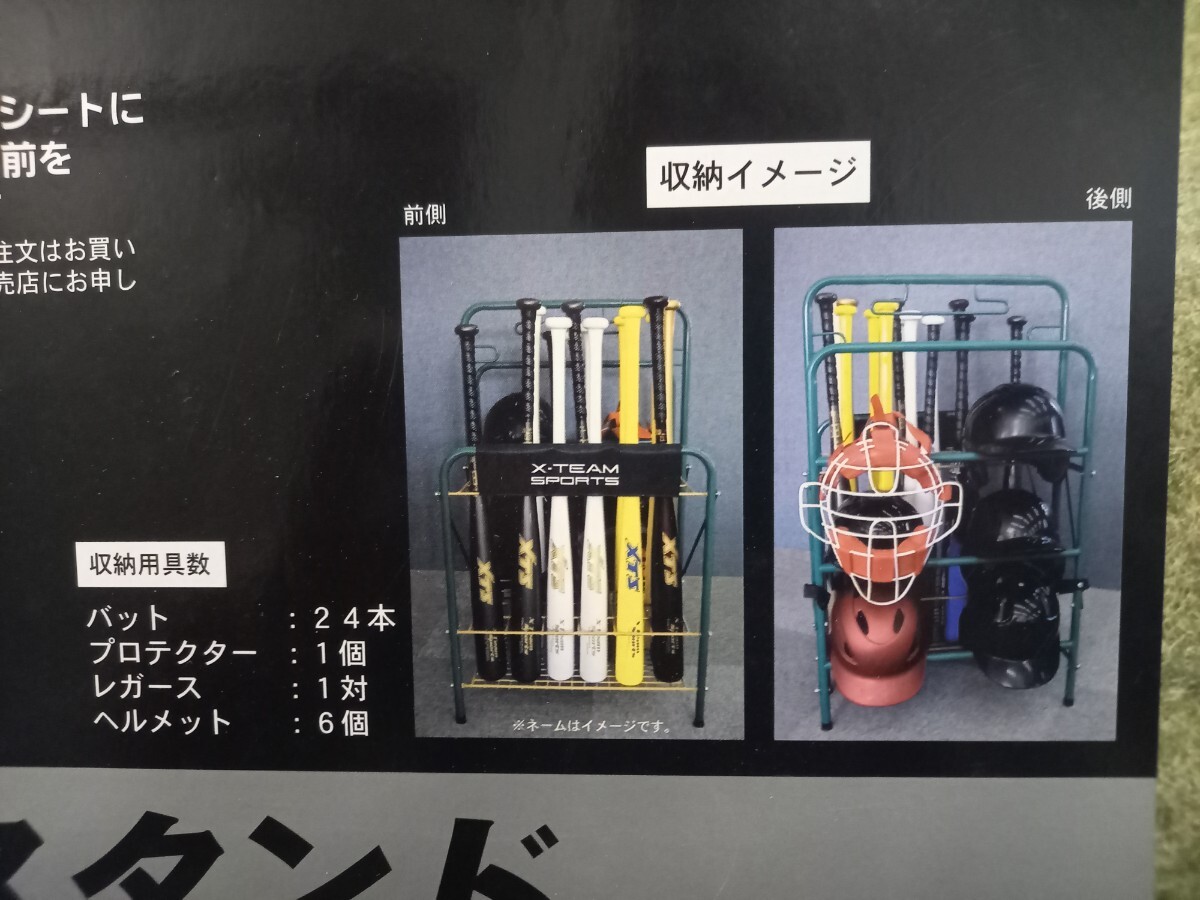 販売終了/入手困難/激レア/未使用/自宅保管品 X-TEAM SPORTS 折畳バットスタンド 使用時W59×H96×L50重量6.2kgバット24本ヘルメット6個他