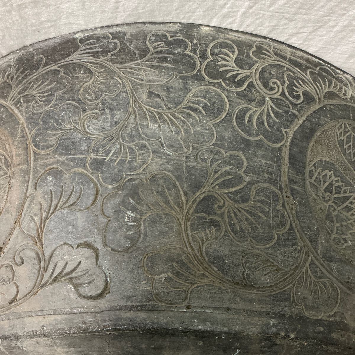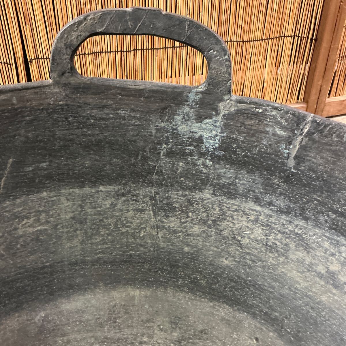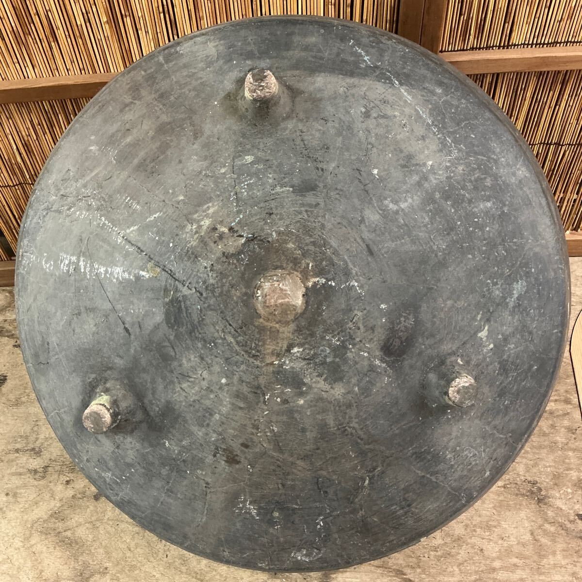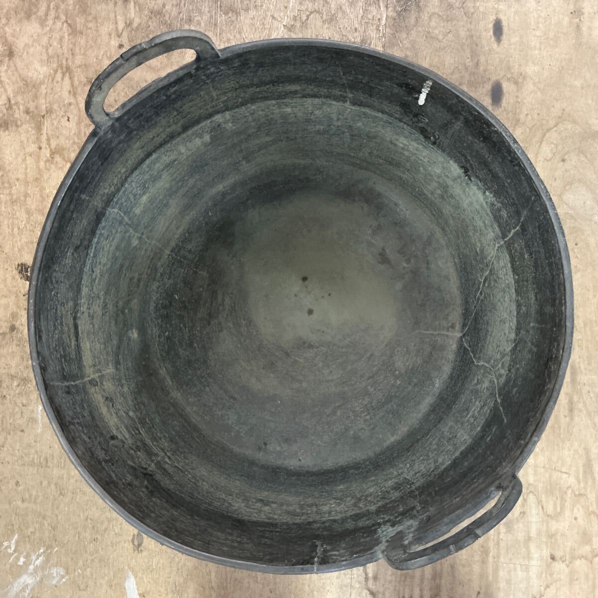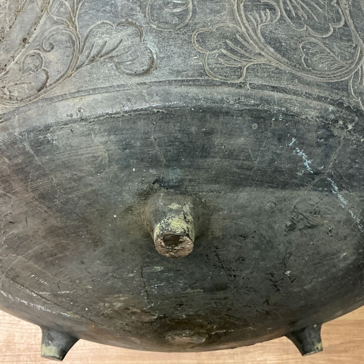 希少品 時代 銅製 特大 三つ葉葵紋刻 三足 手付水鉢 です。