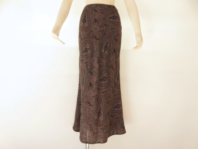 ■上質美品 【 Lois CRAYON 】ロイスクレヨン 高級 ペーズリー ロング スカート 日本製 9号 M 送料185円 ブラウン チューリップ b1796
