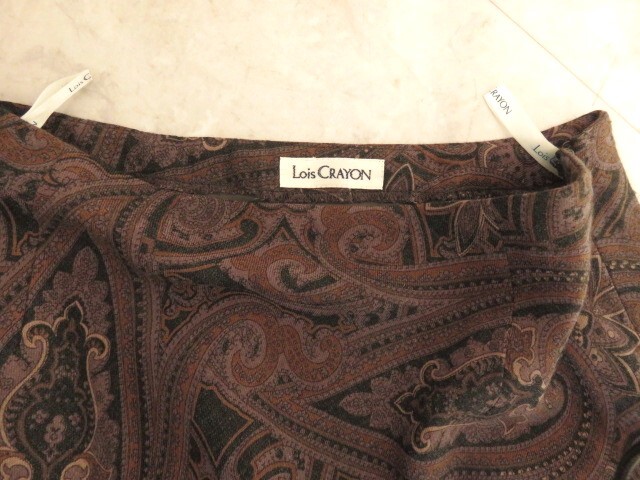 Lois CRAYON ロイスクレヨンの高級ロングスカート、お色はグレー×ブラウン×紫色のペーズリー柄です。
