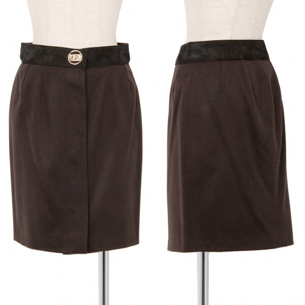 グッチGUCCI ウエストレザーキャメルジップスカート 茶38 |