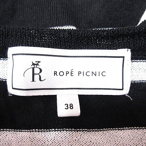 ロペピクニック ROPE Picnic カーディガン ニット 長袖 ボーダー 38 M 黒 ブラック 白 ホワイト /RT レディース