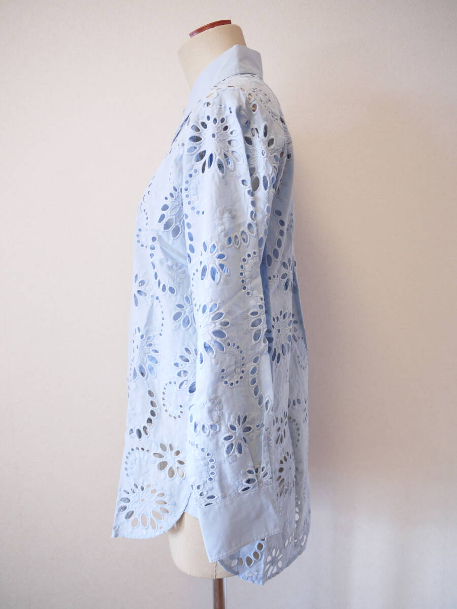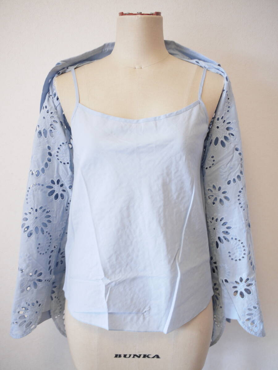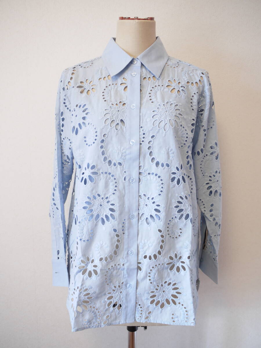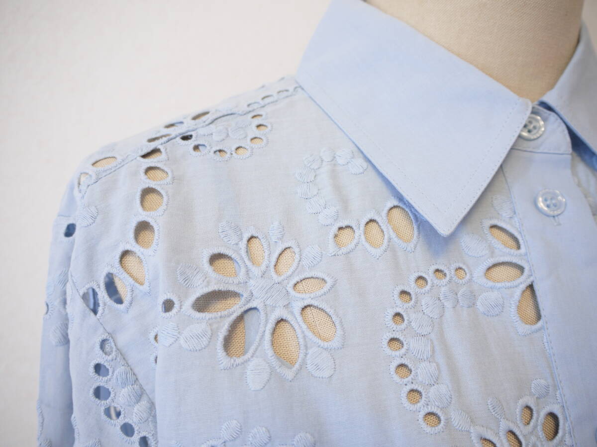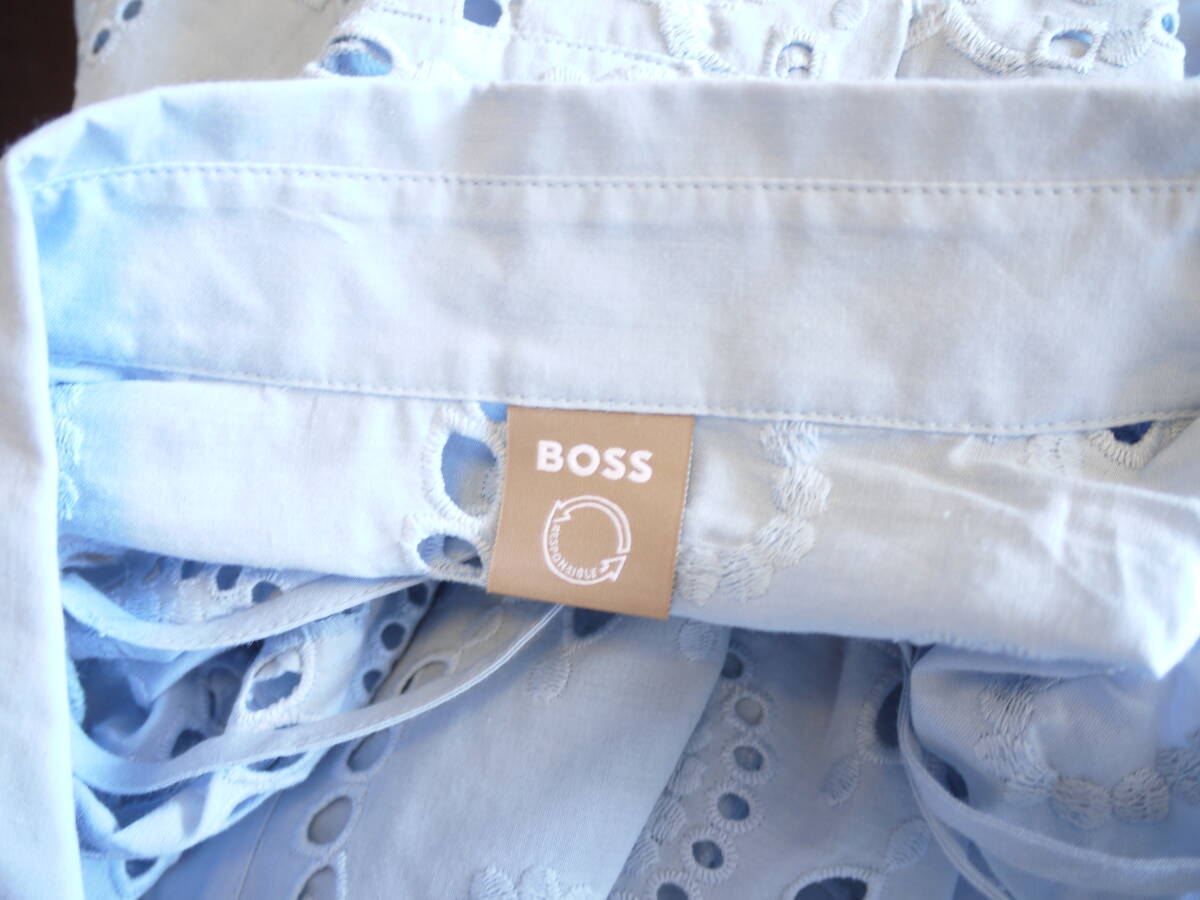 BOSS ボス コットンレースブラウス ブルー M 未使用