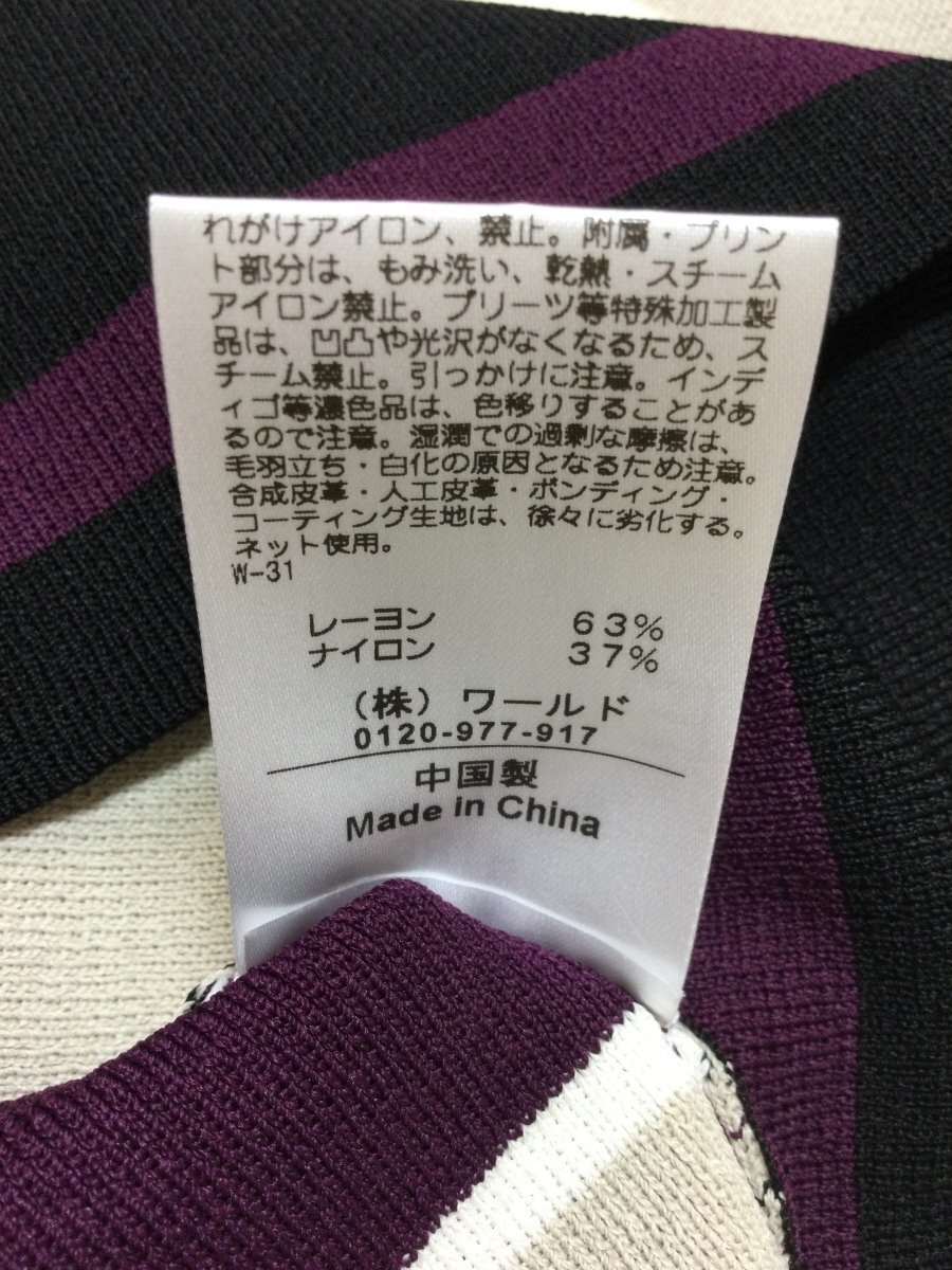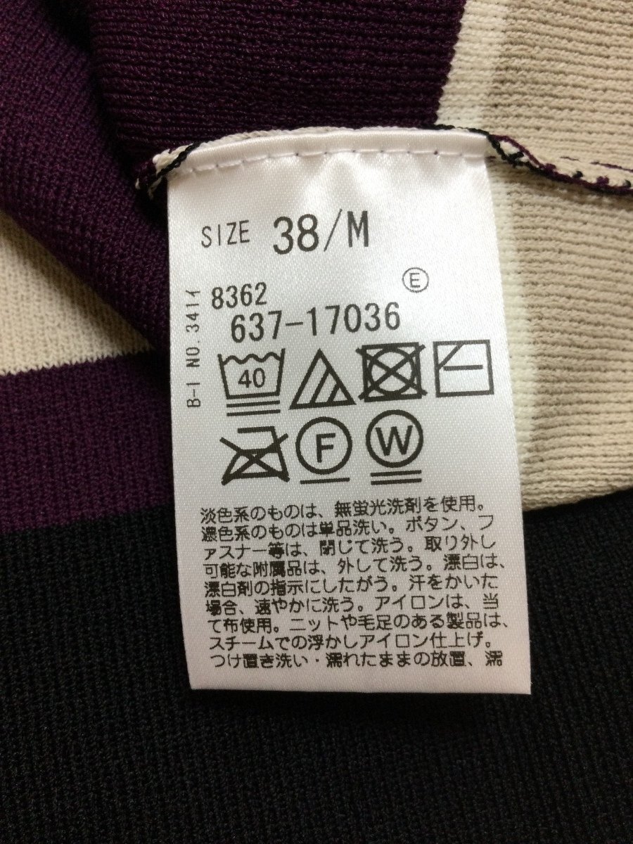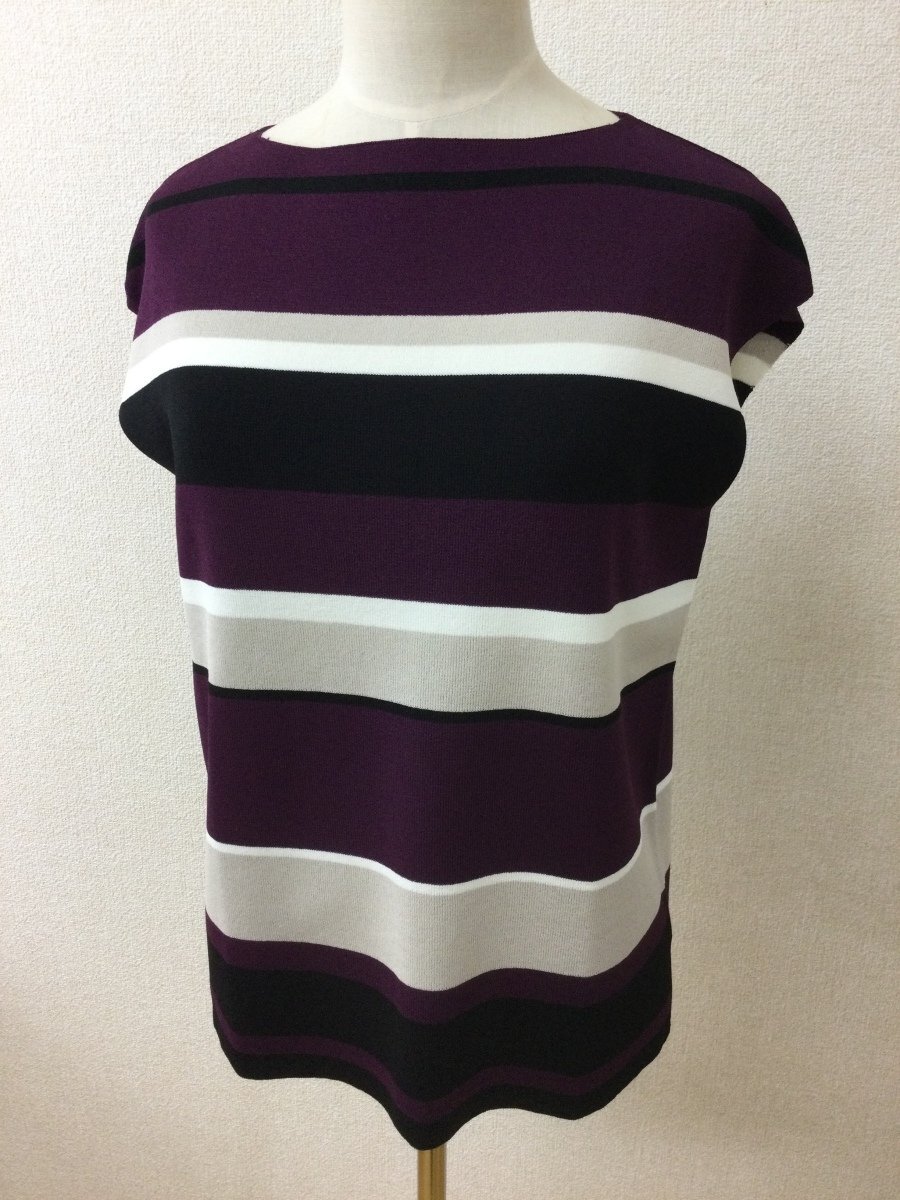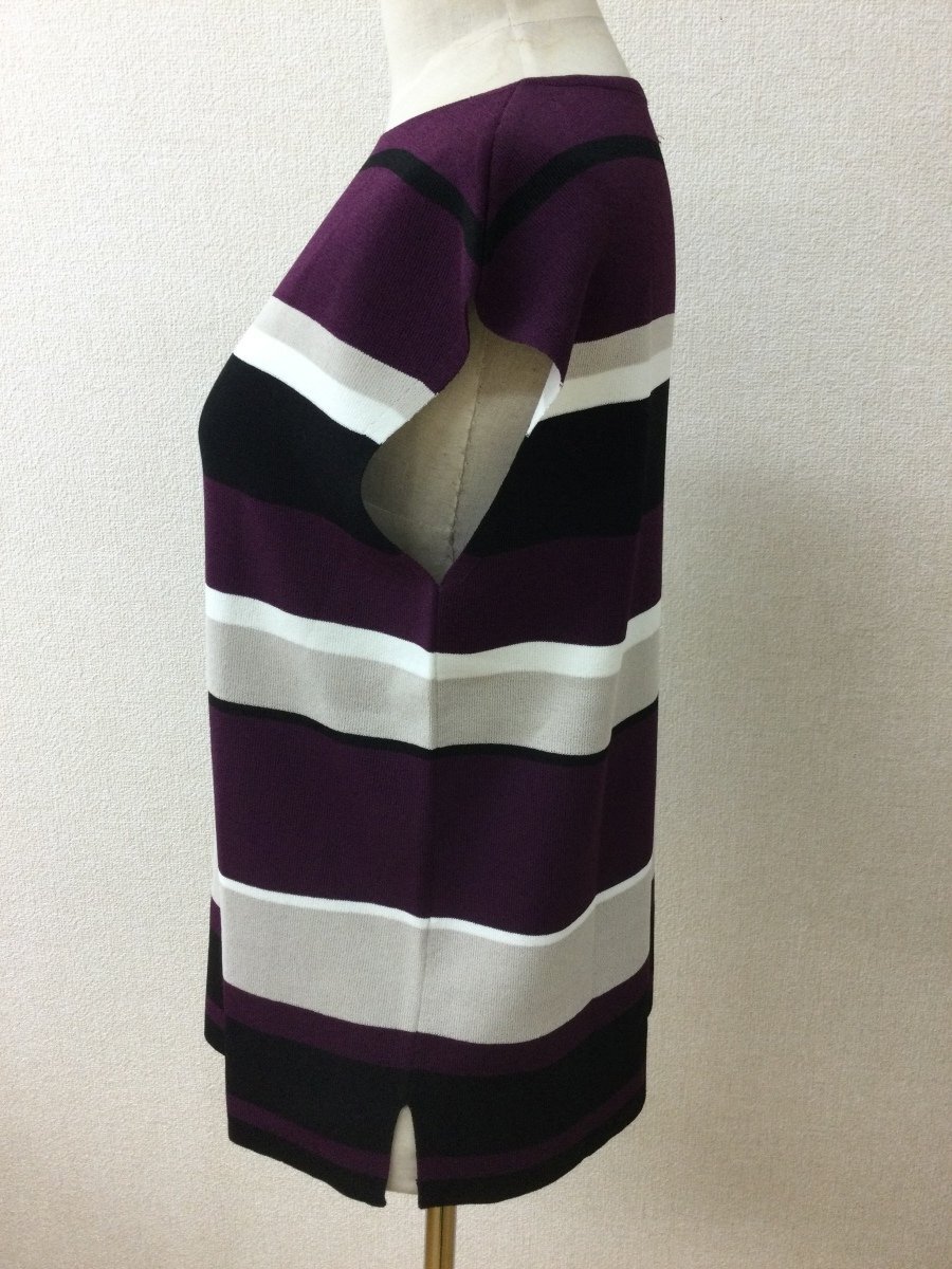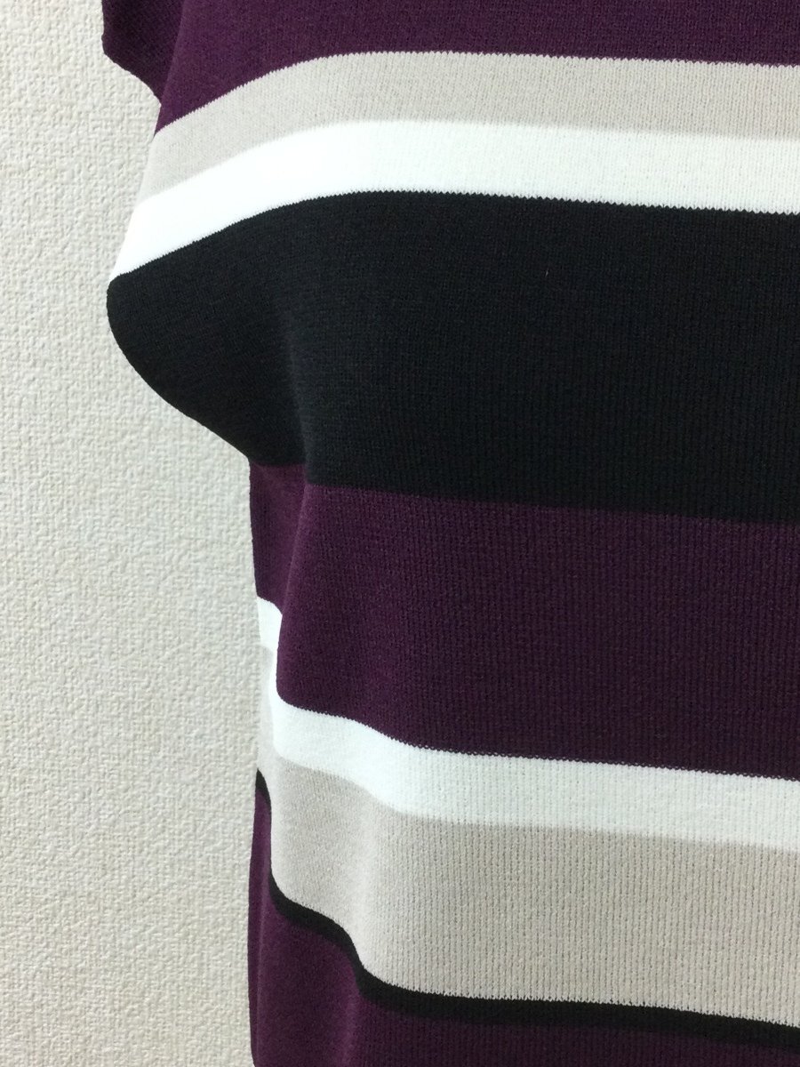 管理番号:10^136239 オペークドットクリップ タグ付き未使用 パープルやベージュのボーダーニット 表示サイズ:38/M 実寸(参考)