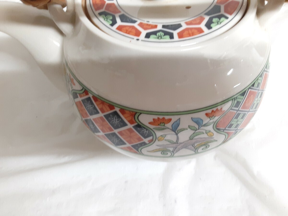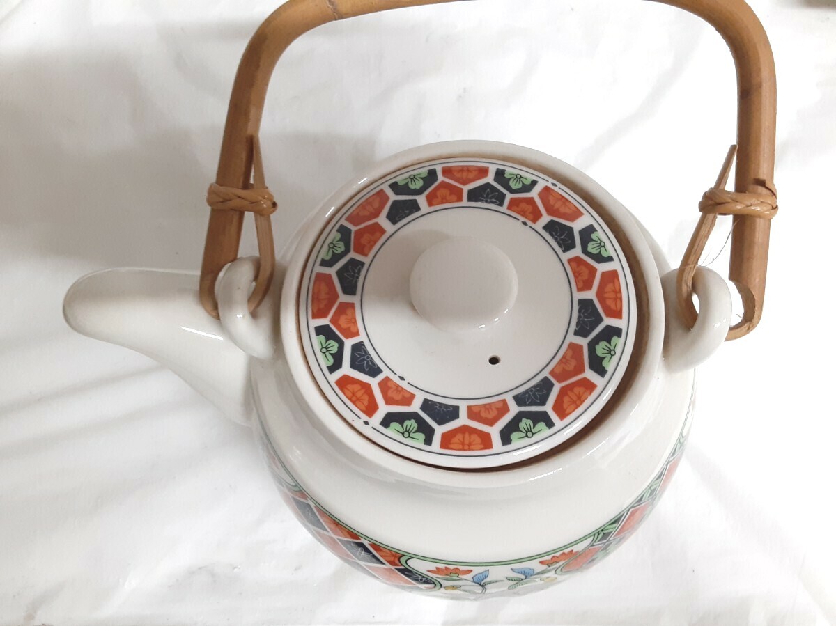 ☆陶器製☆花柄ポット☆藤ハンドル☆急須☆まじっくどびん☆お茶ティー☆【管理番号 B-2】