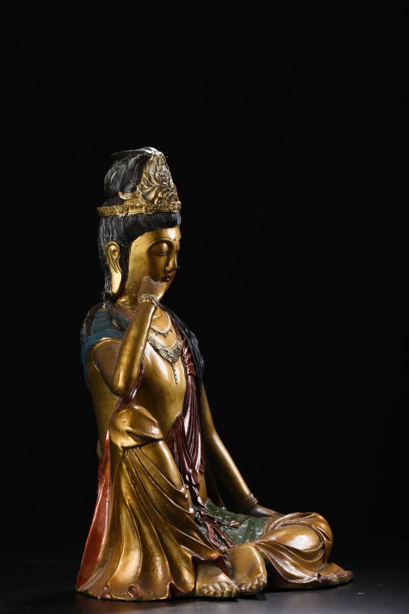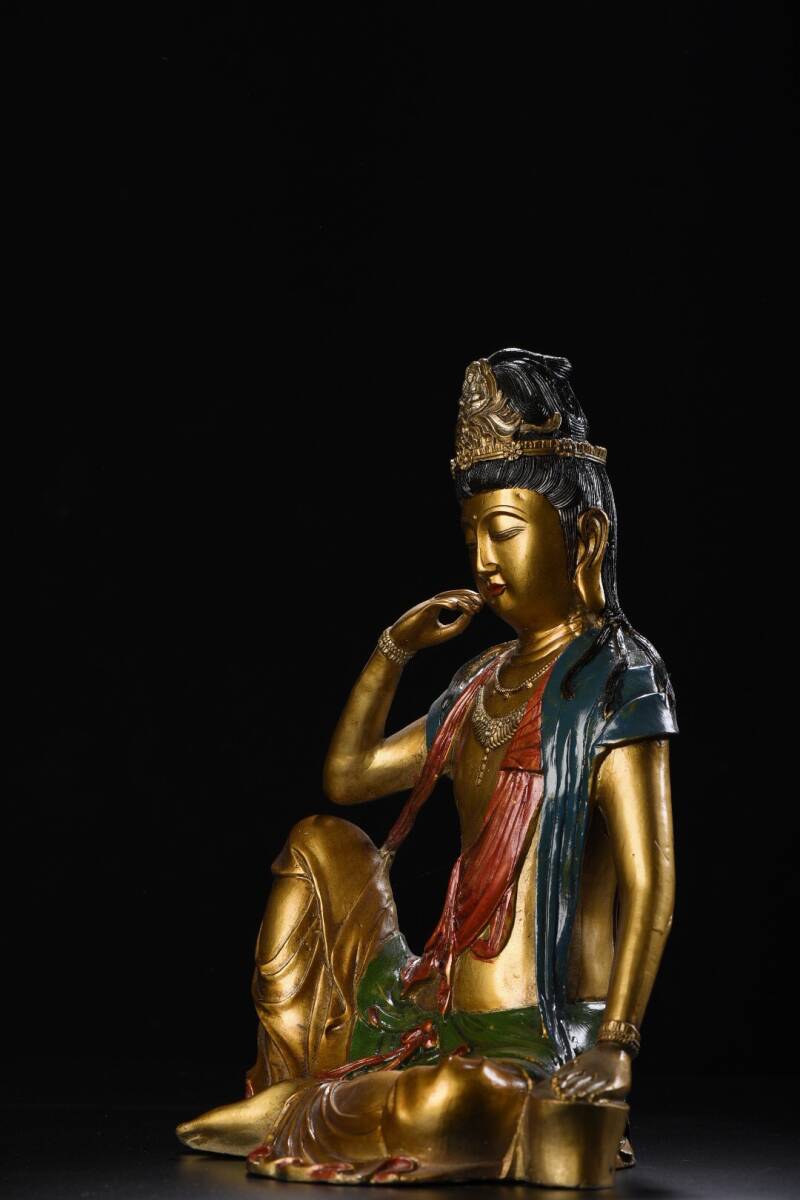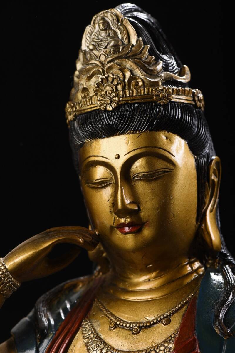 【仁】『銅製・金鍍・彩繪・自在觀音像・仏教古美術・供養品』極細工 古賞物 中国古玩 古美術 古美味