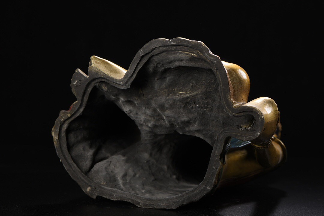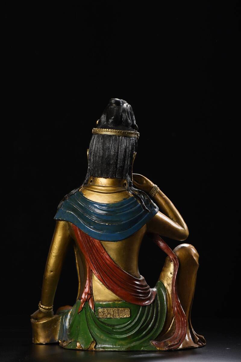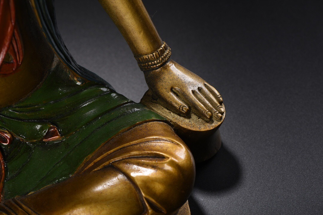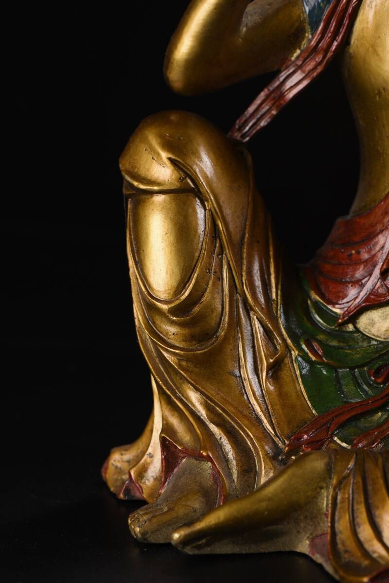 【仁】『銅製・金鍍・彩繪・自在觀音像・仏教古美術・供養品』極細工 古賞物 中国古玩 古美術 古美味
