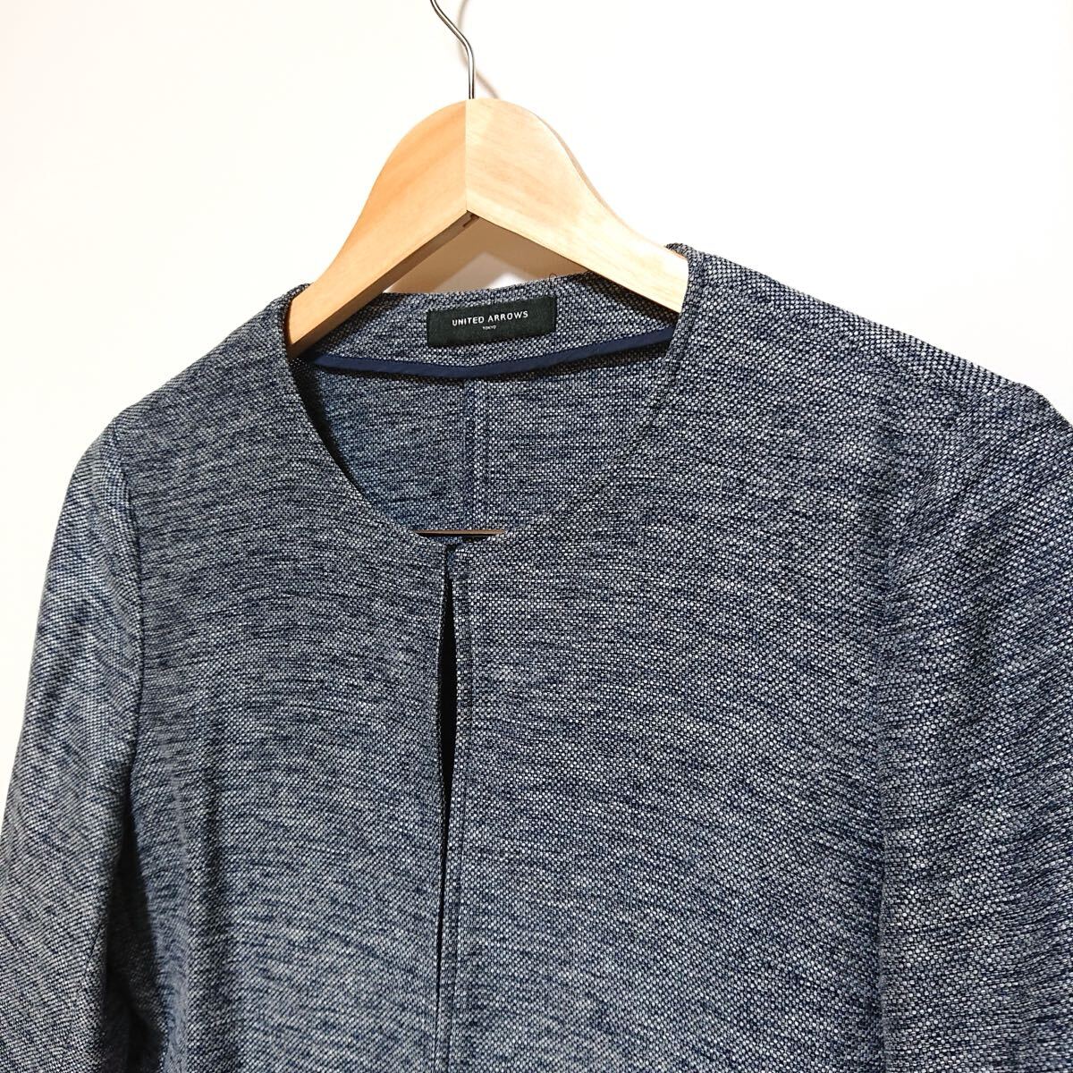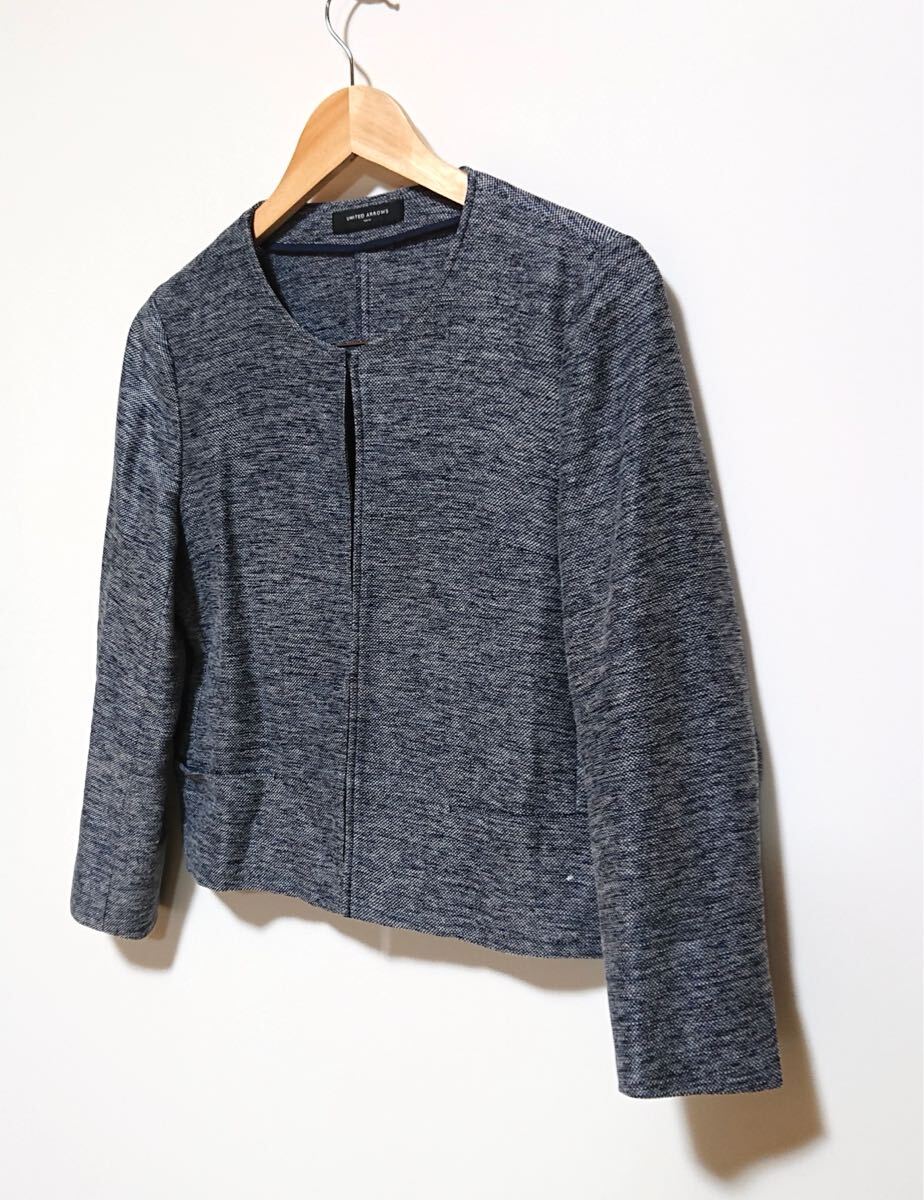 h2234gg 日本製 UNITED ARROWS/ユナイテッドアローズ サイズ40(M位) ノーカラージャケット ネイビー系 レディース フォーマル 卒入学式