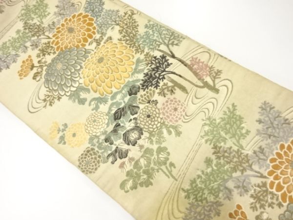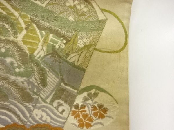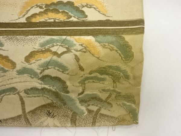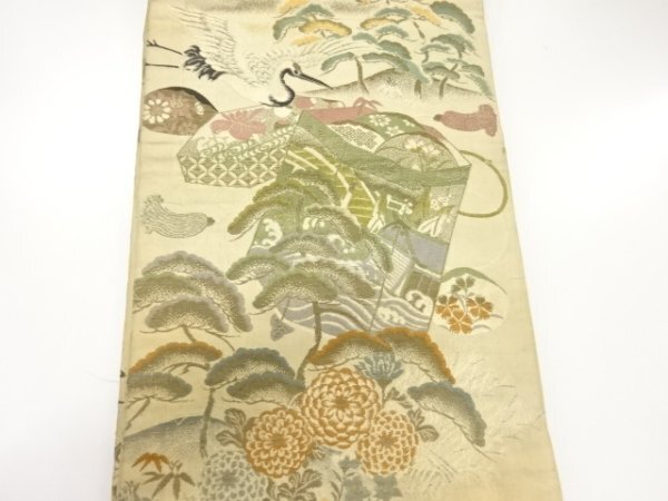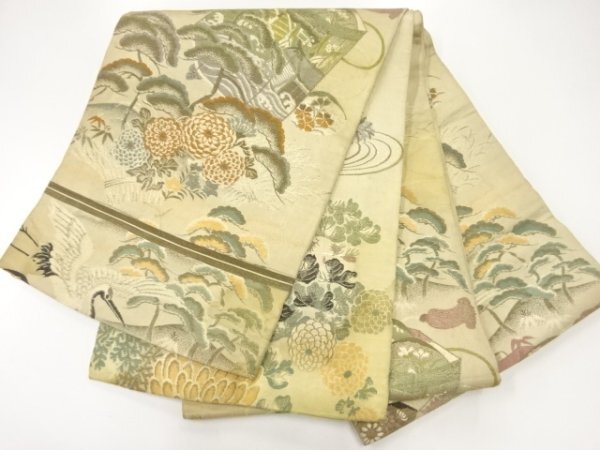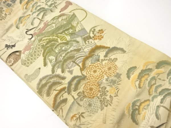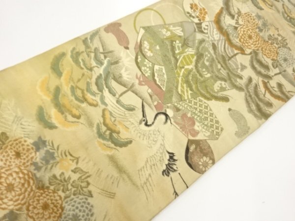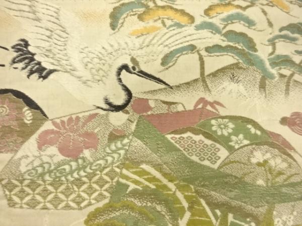 ys7344576; 貝桶に松鶴模様織出し丸帯(材料)【アンティーク】【着】