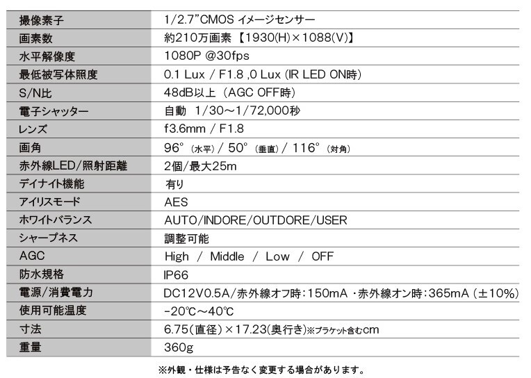 ●3.6mm固定レンズ搭載