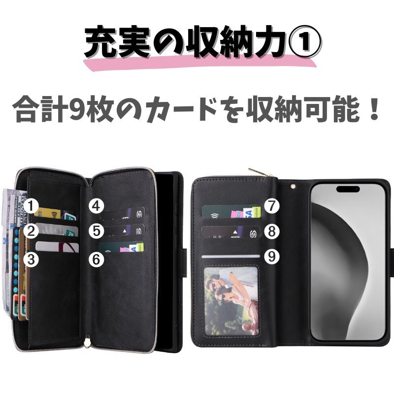 カードポケットx9 ファスナーポケットx1の充実の収納力