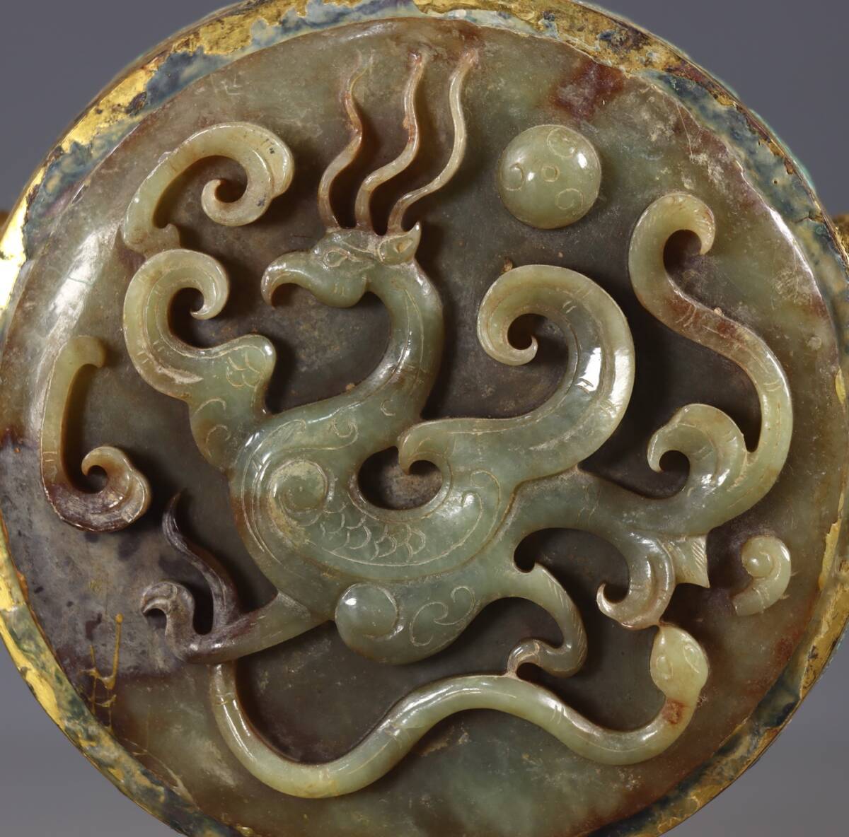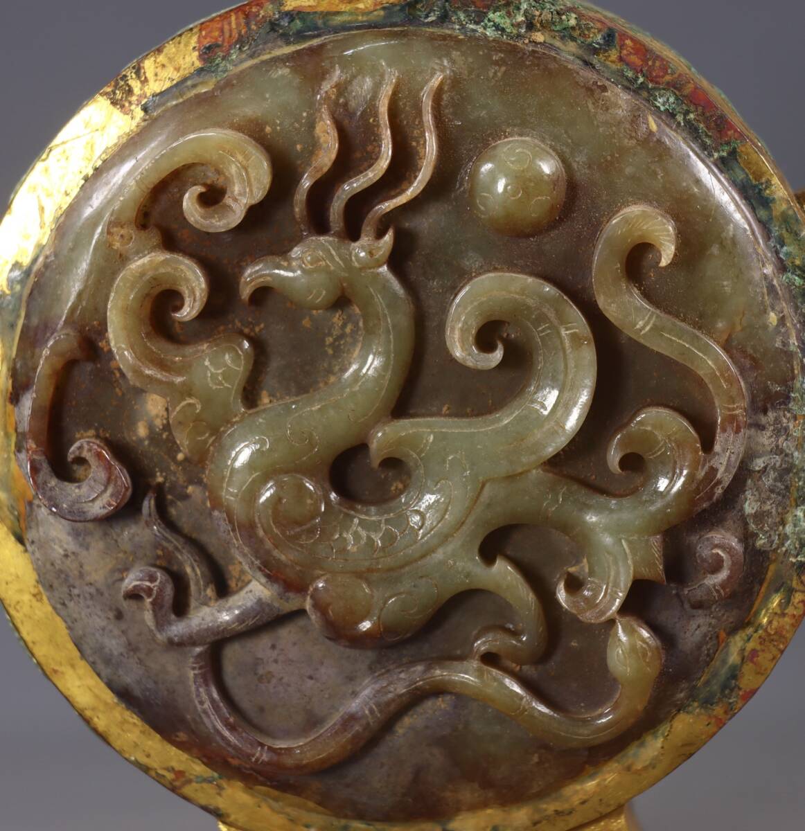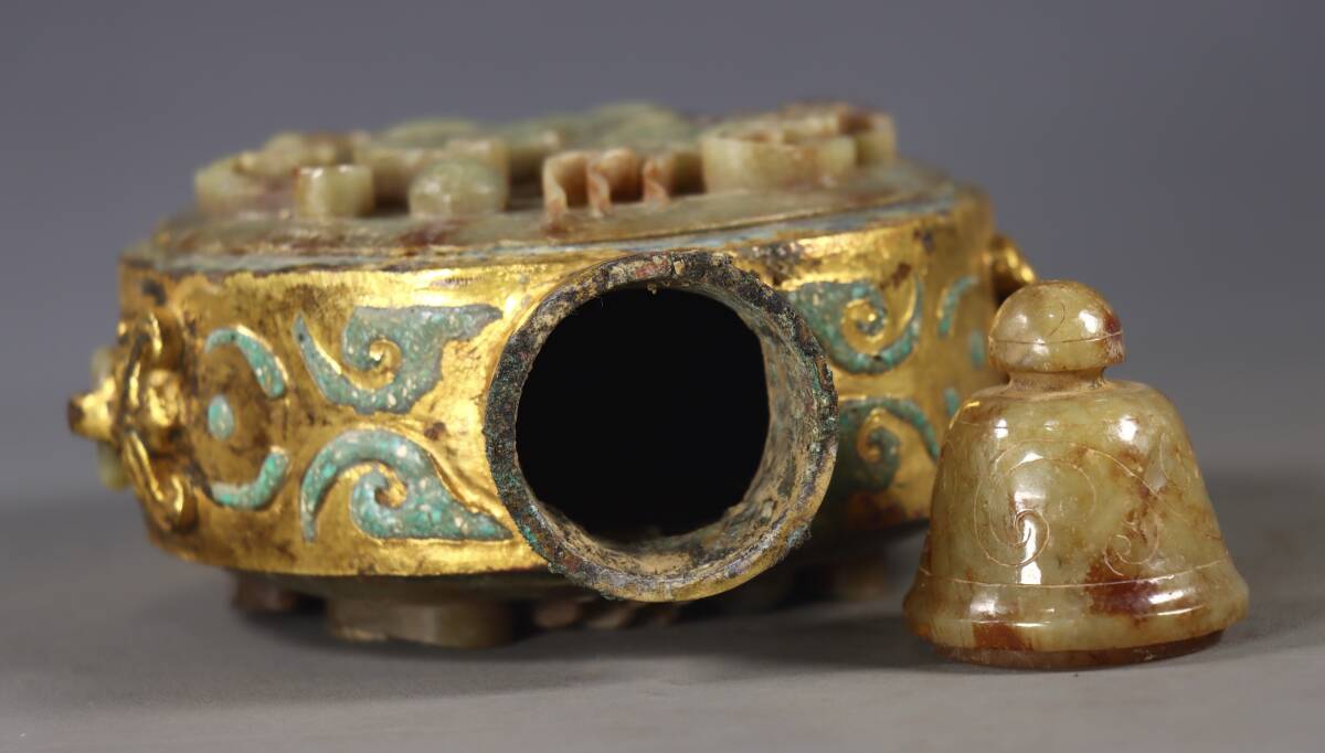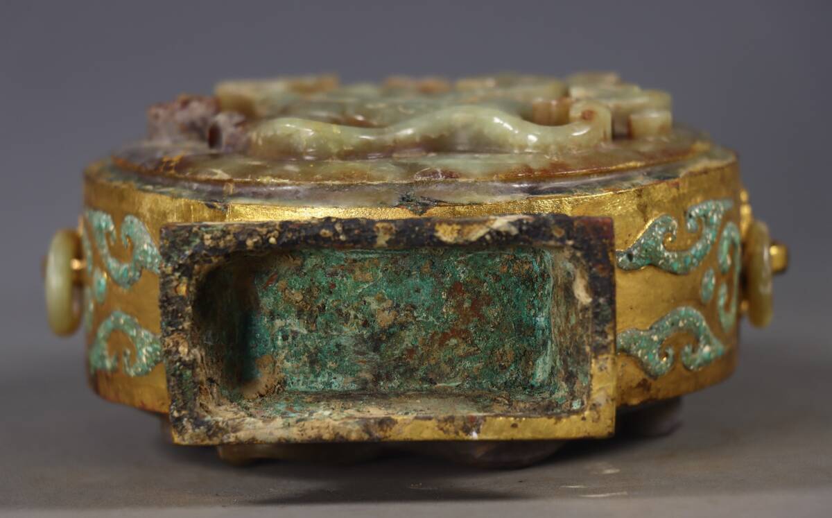 唐物 戦漢時期 青銅 塗金 象眼 和田玉 扁瓶 銅製品 希少珍品 美術品 時代物 D63