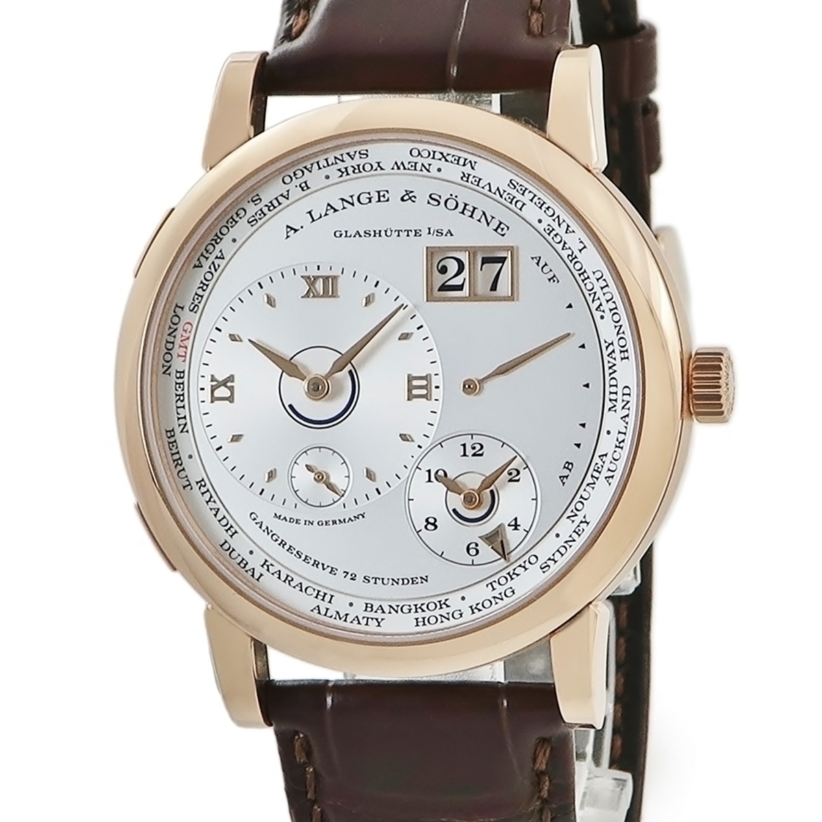 ランゲ&ゾーネ LANGE&SOHNE ランゲ1 タイムゾーン 136.032 K18PG無垢 ビッグデイト シルバー メンズ 腕時計 手巻き シルバー 中古 店頭受取不可 | |