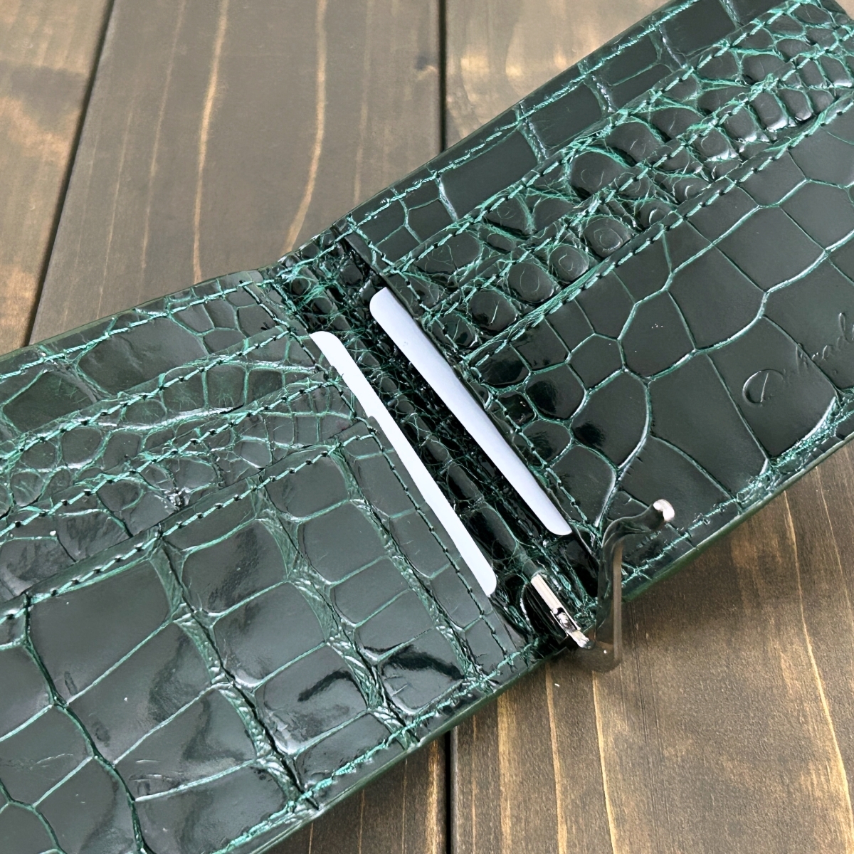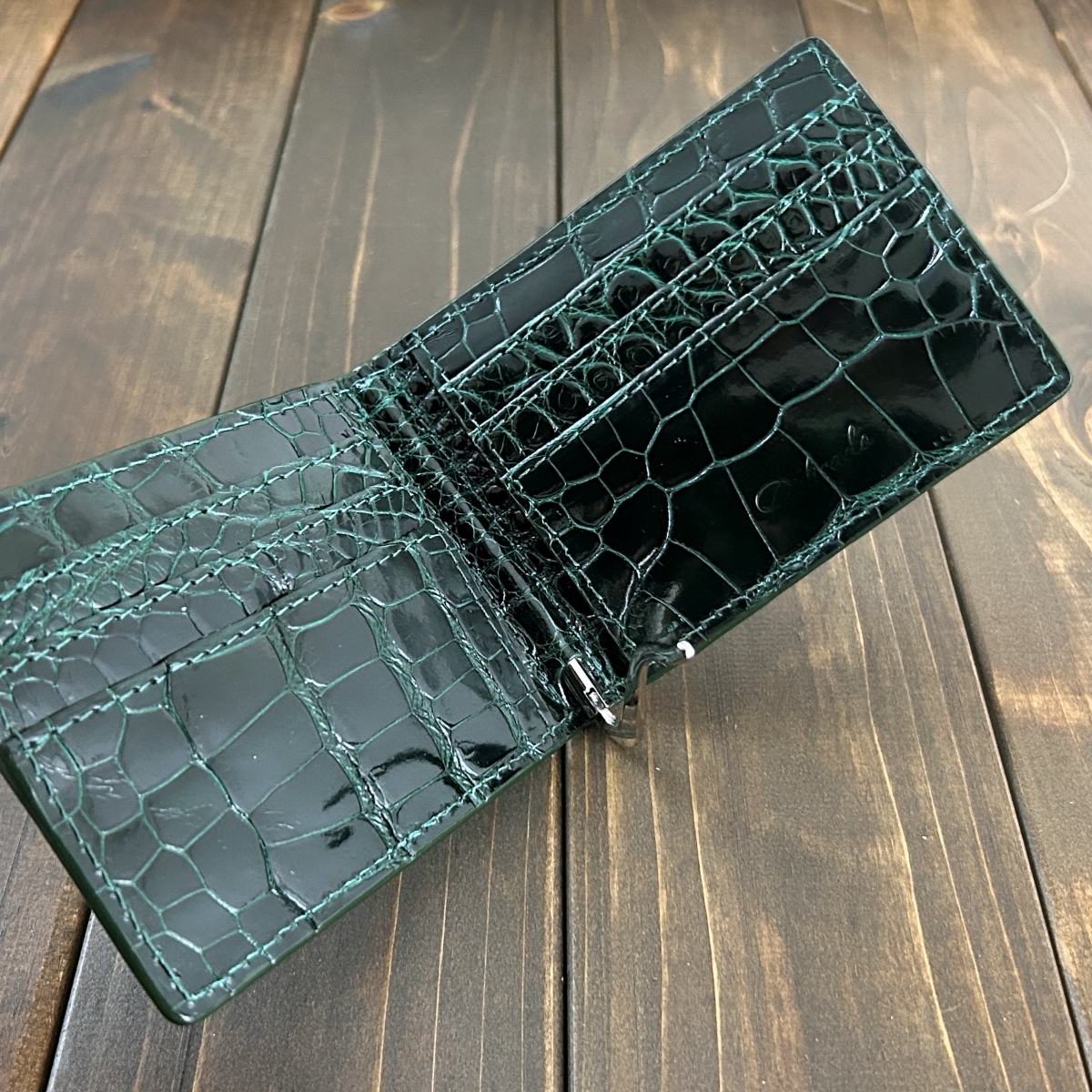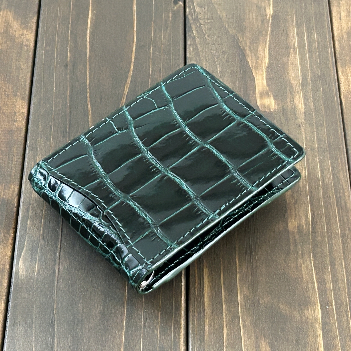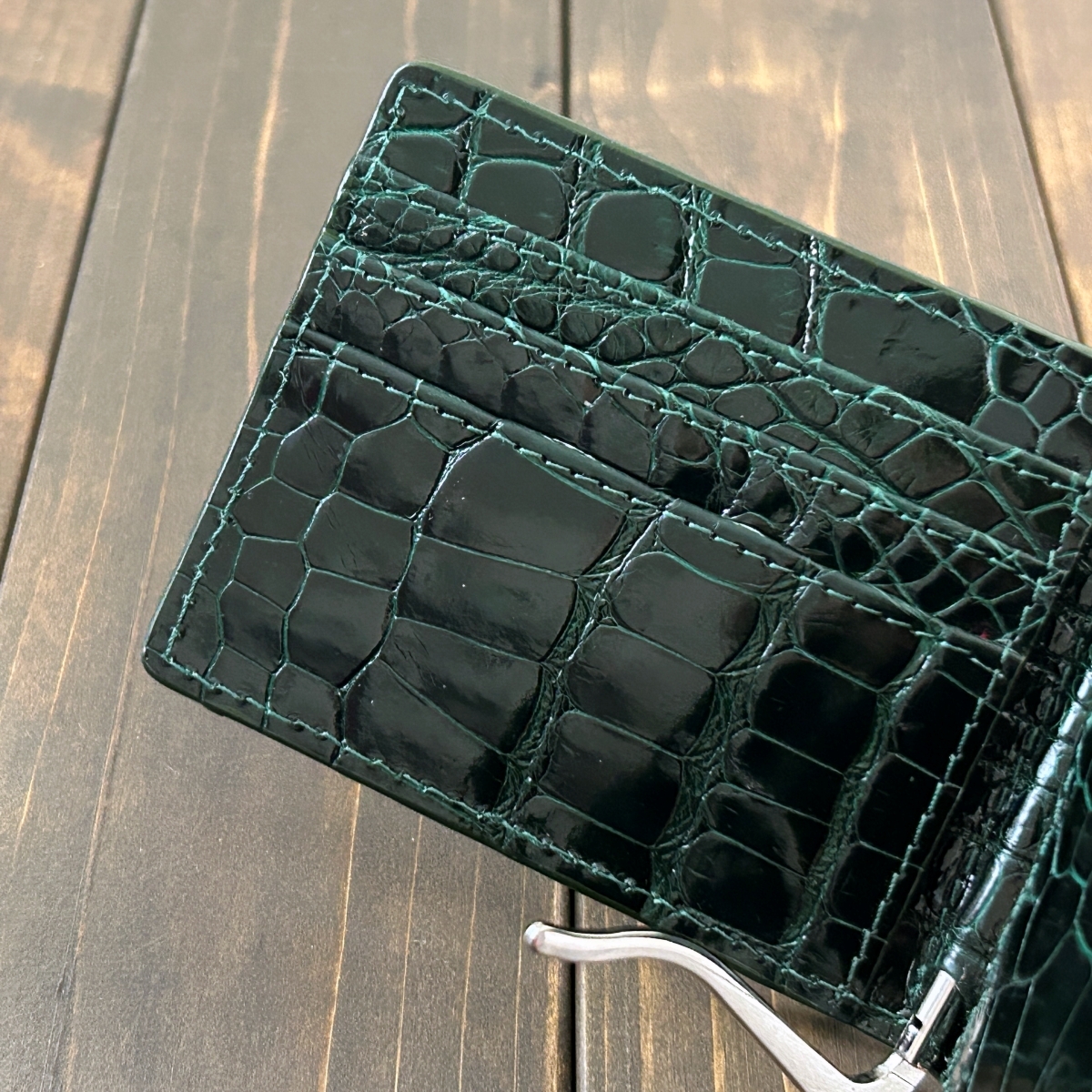 CROCODILE クロコダイル 無双 マネークリップ ダーク グリーン 緑 小銭入れ スモールクロコダイス ポロサス 財布 ワニ革 折財布