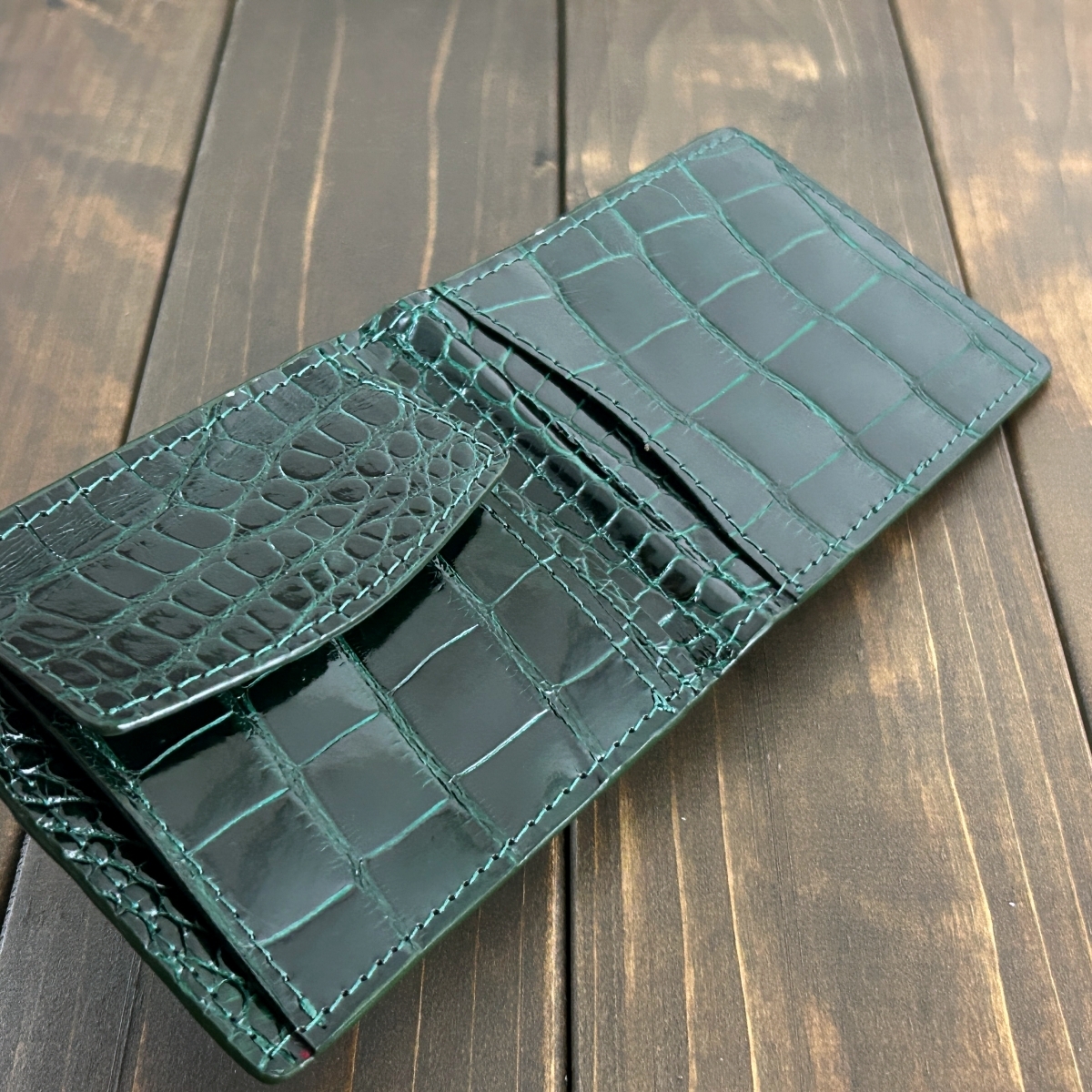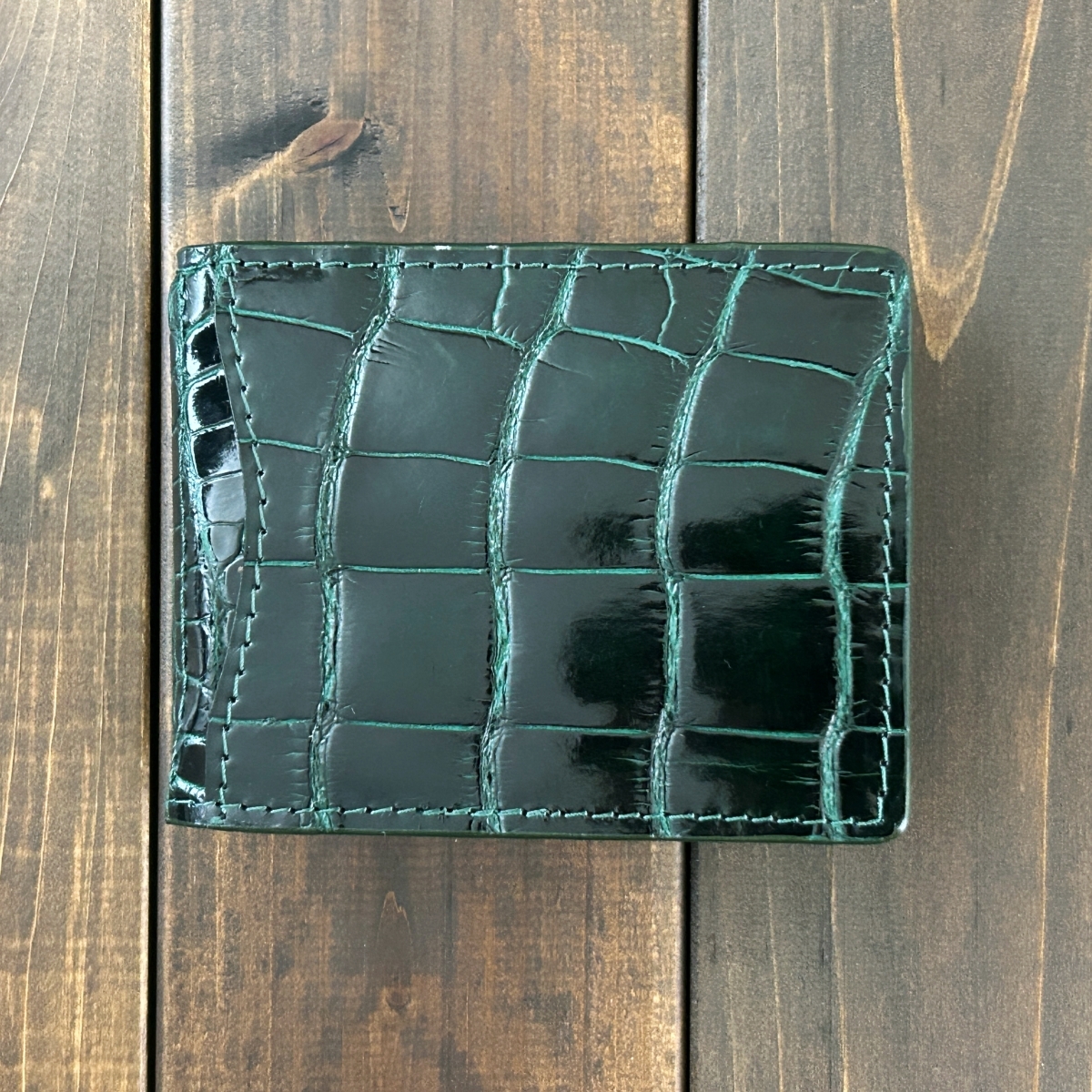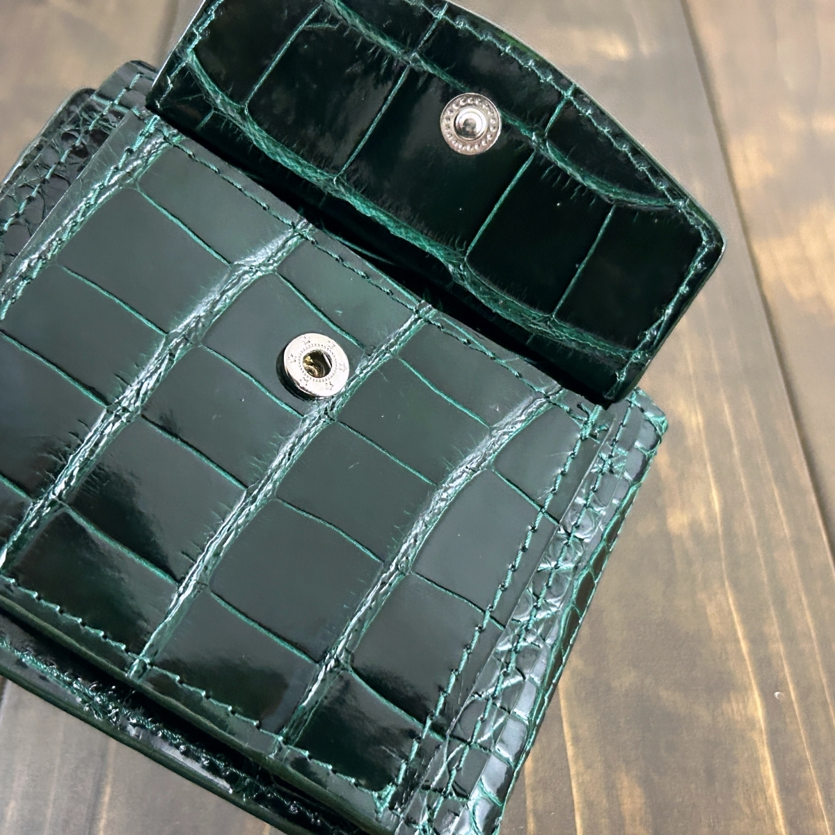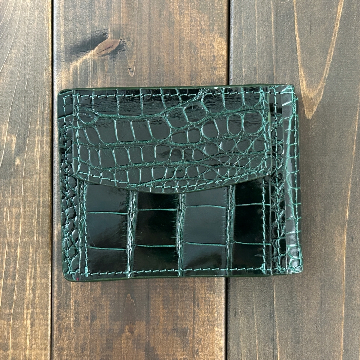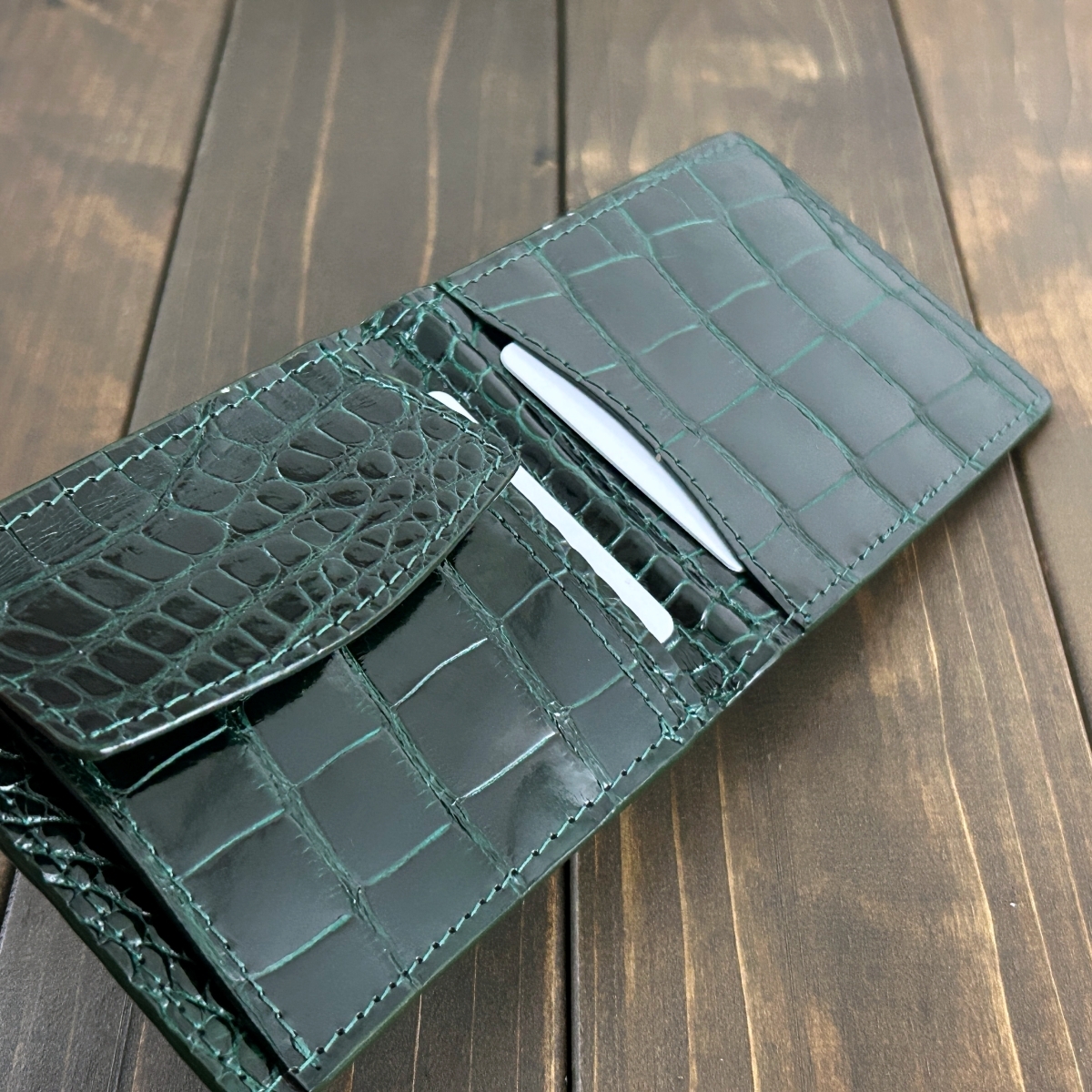 CROCODILE クロコダイル 無双 マネークリップ ダーク グリーン 緑 小銭入れ スモールクロコダイス ポロサス 財布 ワニ革 折財布