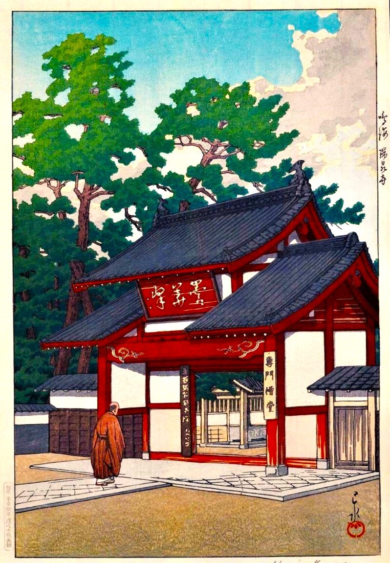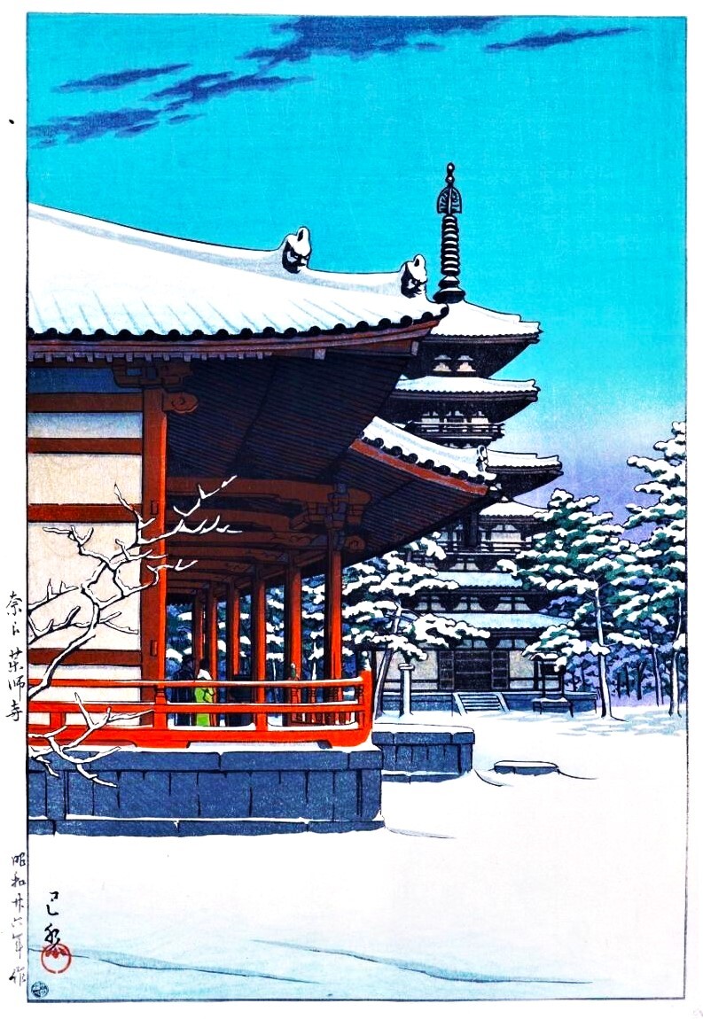 ■商品説明■ | □川瀬巴水 5作品(No14) 越前和紙仕上 複製 ■ 出品作品 ①雪の増上寺 ②奈良春日大社 ③奈良薬師寺 ④鳴海瑞泉寺 ⑤野火止平林寺 ■ サイズ 長辺 29.6cm×短辺21.0cm(マージン・余白含む) ■使用用紙 越前奉書紙 裏焼き 元々は原料を楮とする和紙である楮紙のうち、白土などを混ぜて漉きあげたもので、日本の歴史上、奉書などの古文書で使用された。現代では、パルプを原料とするものも含めた白くてしっかりした和紙の総称となっており日本画制作における支持体や裏打ち紙、木版の版画用紙などの絵画材料に使用されている。 ■印刷方式(無版式採用) 印刷方式は「有版式」と「無版式」の2種類に大きく分類。印刷の際に「版」があるかないかに違いがあります。 ■ 作 者 川瀬 巴水(かわせ はすい、1883年(明治16年)5月18日 - 1957年(昭和32年)11月7日)は、日本の大正・昭和期の浮世絵師、版画家。本名は川瀬 文治郎(かわせ ぶんじろう)。衰退した日本の浮世絵版画を復興すべく吉田博らとともに新しい浮世絵版画である新版画を確立した人物として知られる。 ■ 印刷 使用用紙 無版式・インクジェット 越前和紙 奉書紙 裏焼き 複製 ■観 賞 一般のご家庭で額装観賞する場合、作品より大き目の額縁(作品サイズより縦横それぞれ7センチ程度以上)を選んでマット額装すると作品が映えます。 ■価 格 5枚組での複製品で価格もお手頃な設定にしています。真筆ではございませんが洋室・和室問わずインテリアの人気作品としてお楽しみ頂けます。 ■画 像 掲載の画像はお手元のパソコンモニター等の設定により、お届け品とは多少の印象差を生じる場合が御座います。 ■ご希望の商品等 掲載の作品以外でご希望が御座いましたらお申し出下さい。差し替えも可能です。 ■発送等 ヤマト運輸(ネコポス出品者負担) 入金確認後1〜2日以内(日中の発送手配となります) ■受取等 お互いの信頼のため到着後24時間以内にお願いいたします。 |