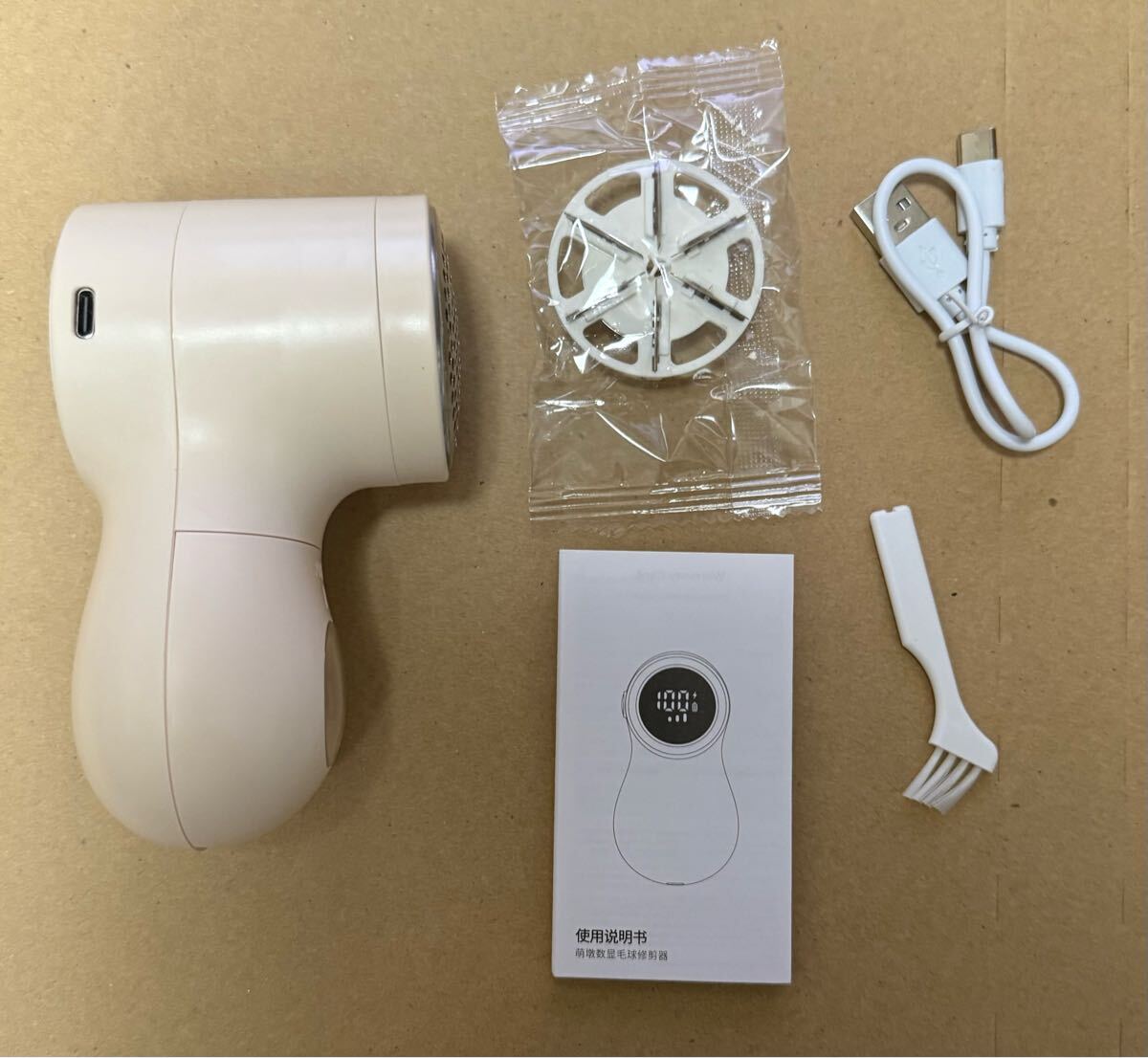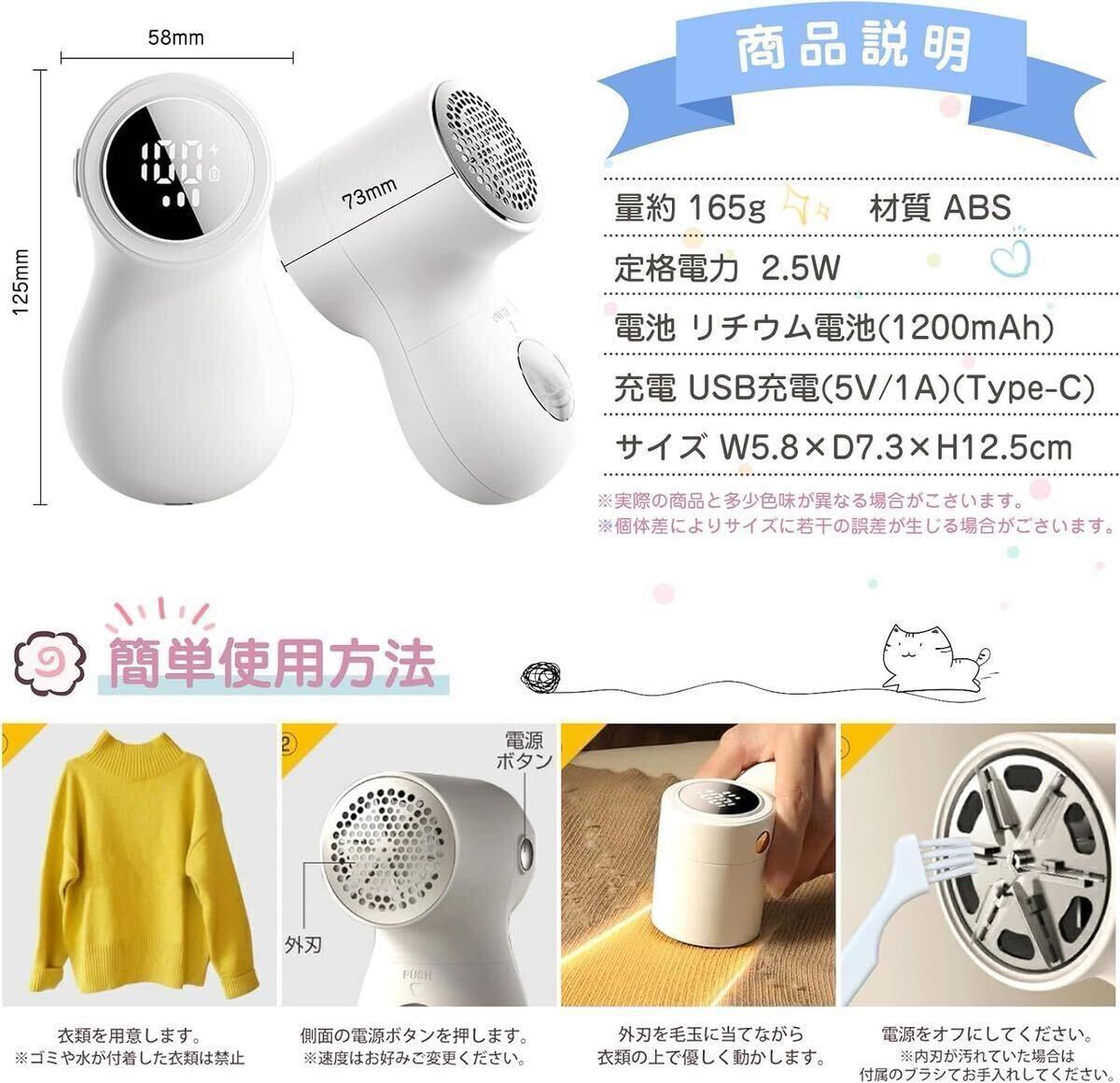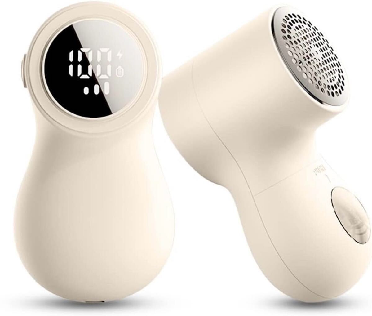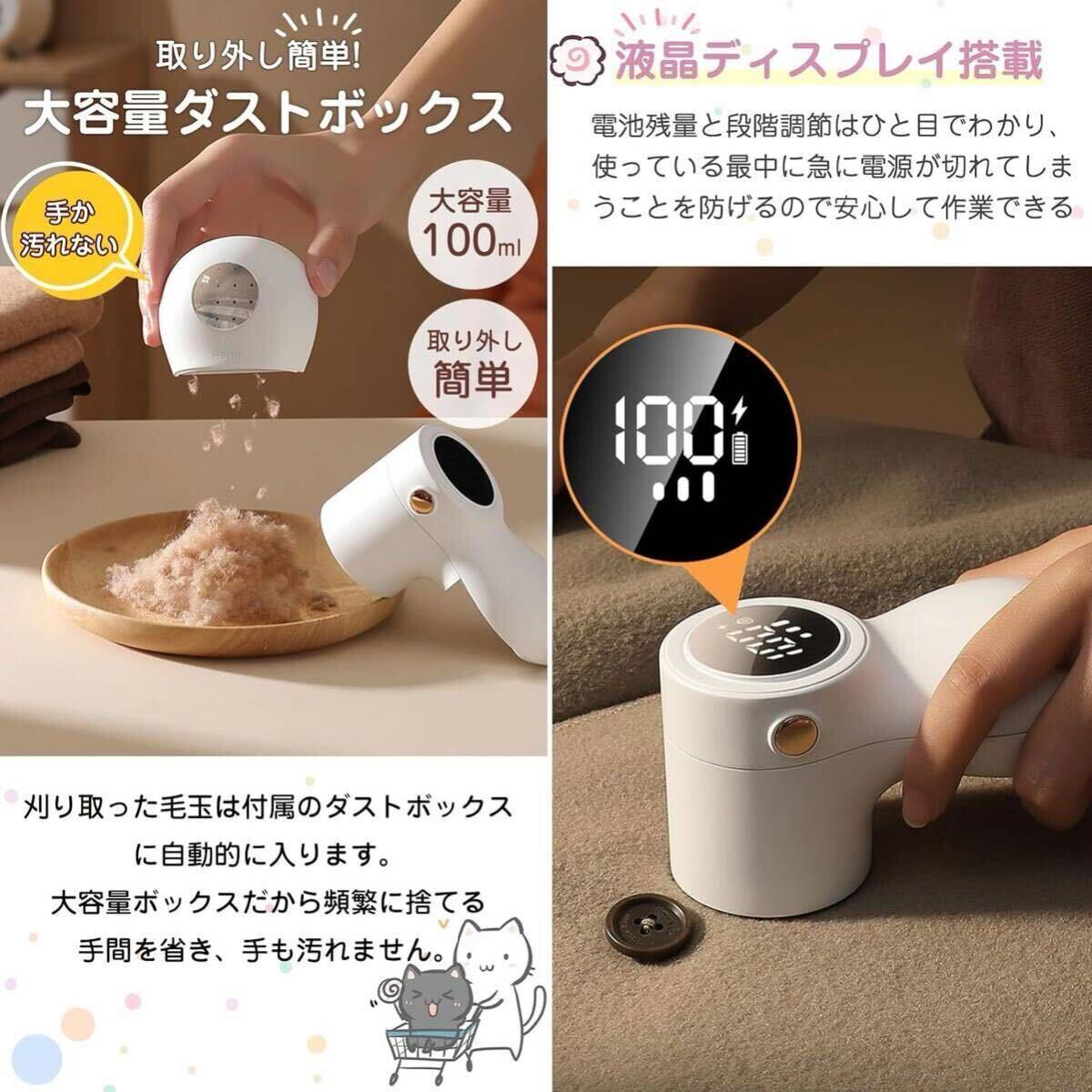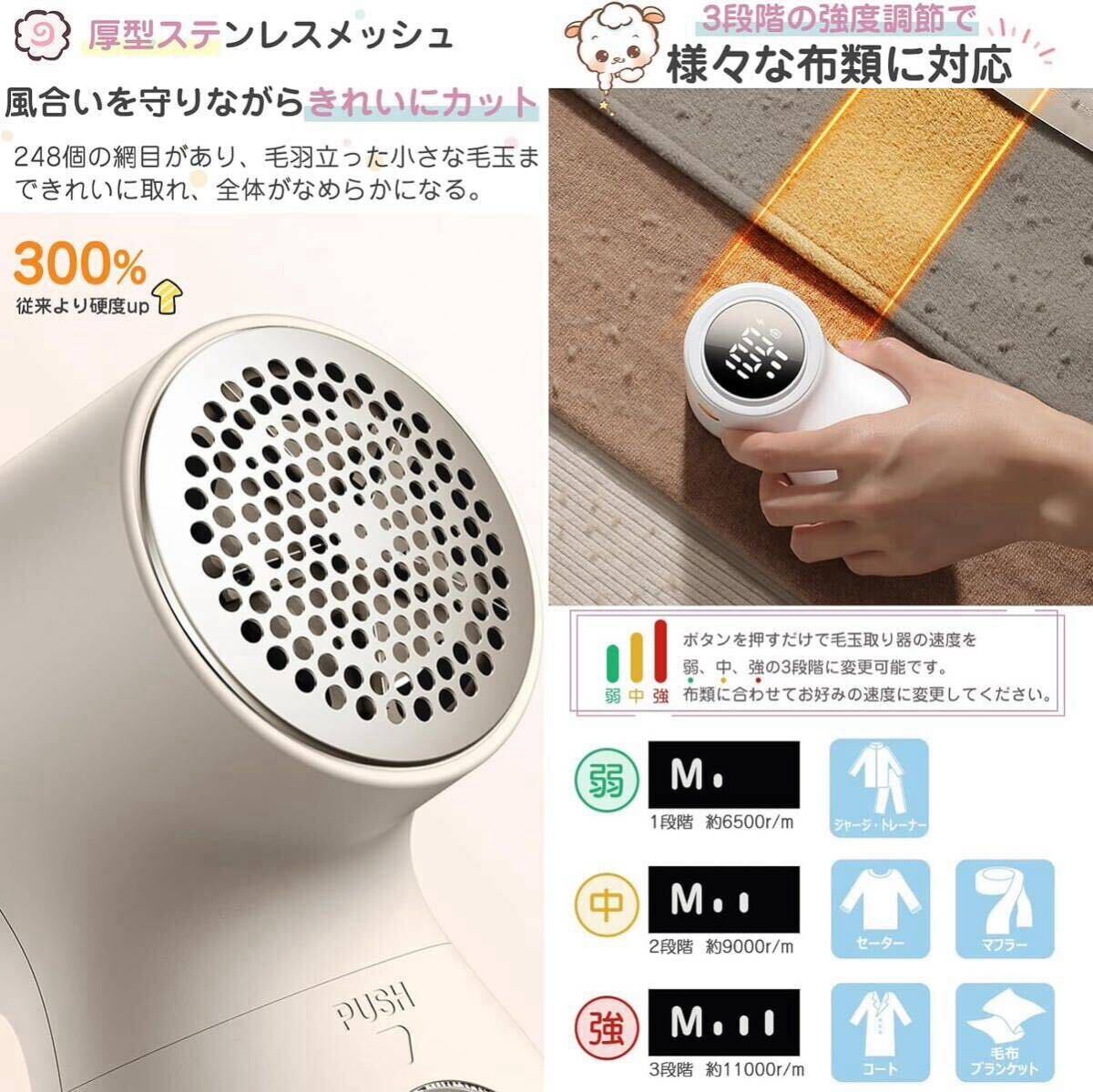 けだまとり 電動 毛玉取り機 毛玉クリーナー 【強力6枚刃・LCD液晶ディスプレイ・安全ロック・超軽量・持ち運び便利】3段階調整 USB充電式 毛玉カット 生地を傷めない 様々な衣類に対応 清掃用ブラシ付属 ベージュ