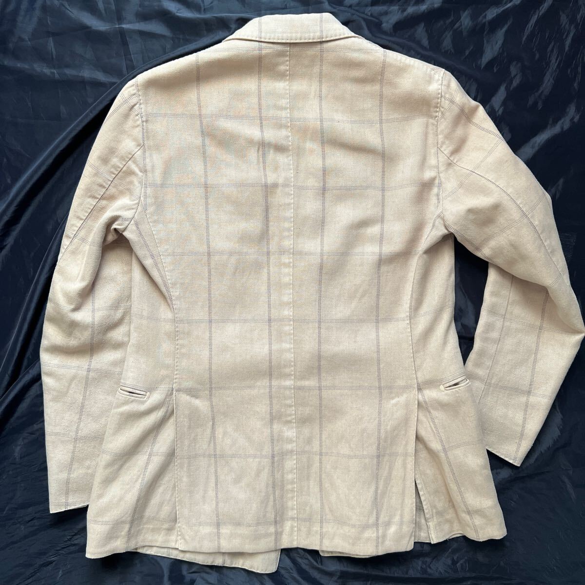 サイズは44で、平置きの肩幅41cm、身幅48cm、袖丈61cm、着丈71.5cmくらいです。多少の誤差はご了承ください。