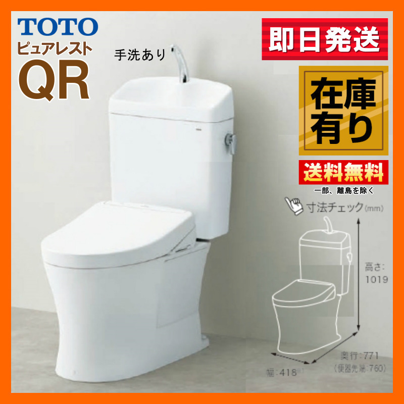 商品名 | TOTO ピュアレスト QR 手洗器付 CS232BM + SH233BA + オート開閉ウォシュレットセット リモデル 排水芯305~540 #NW1 ホワイト リモコン |