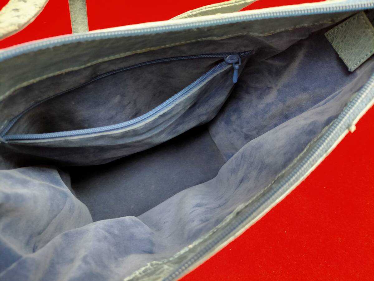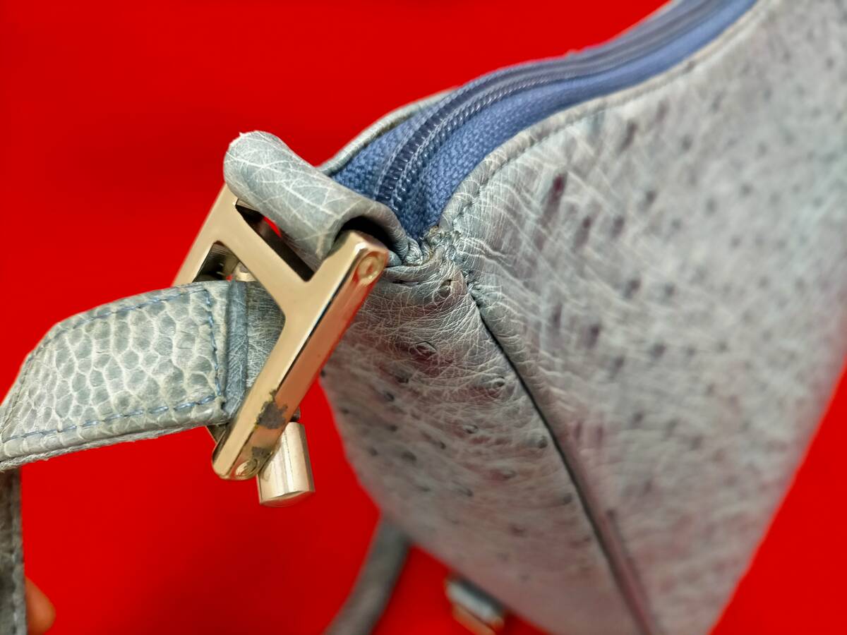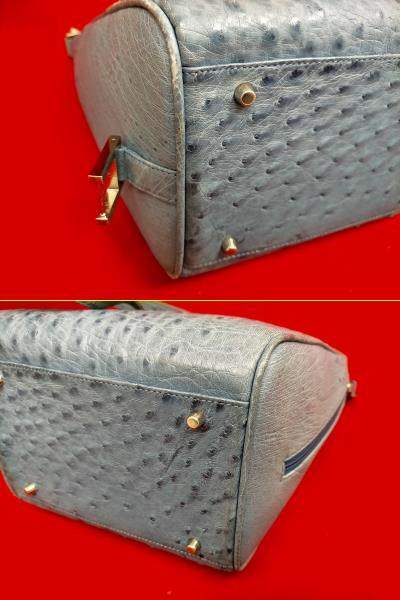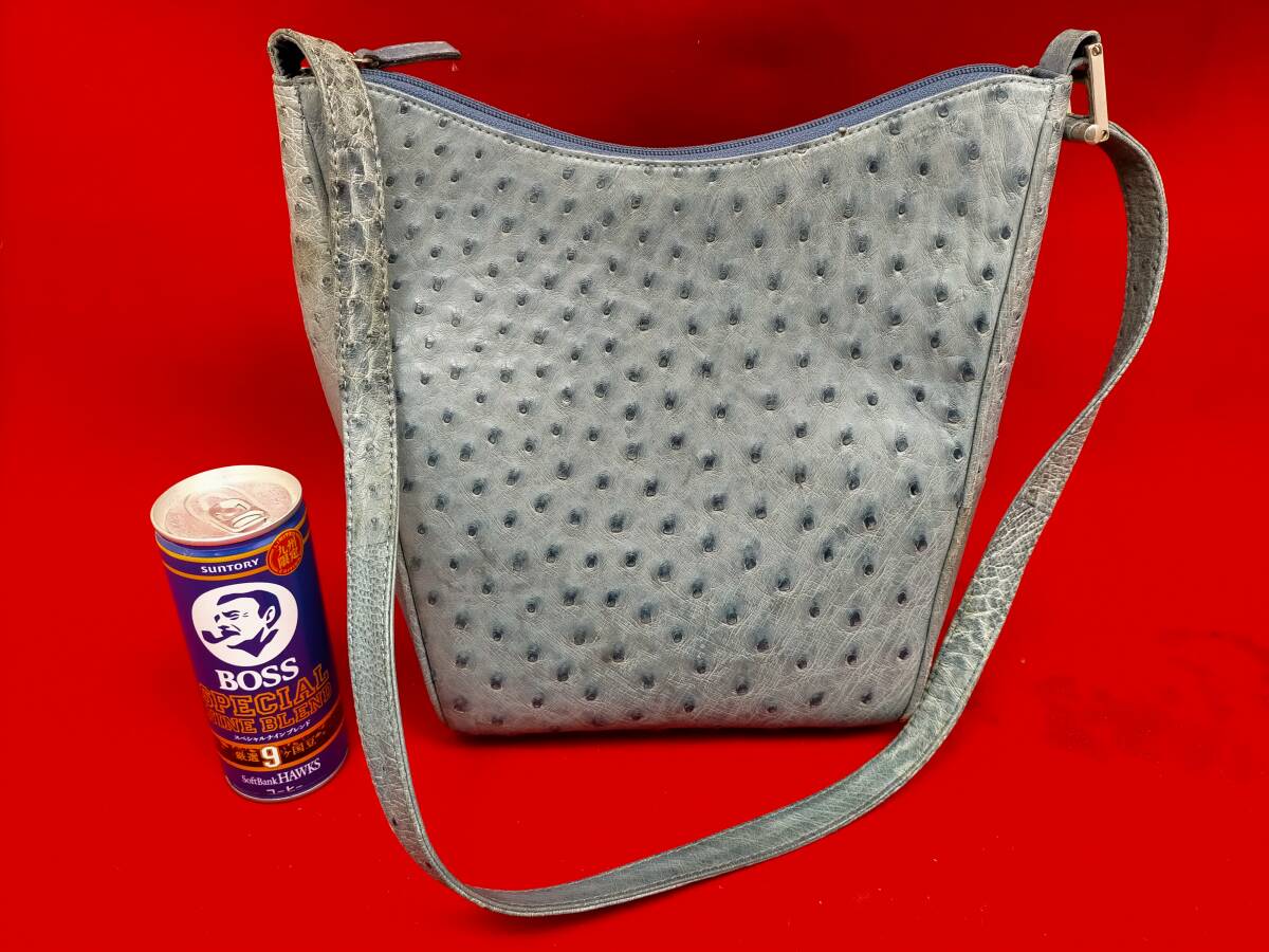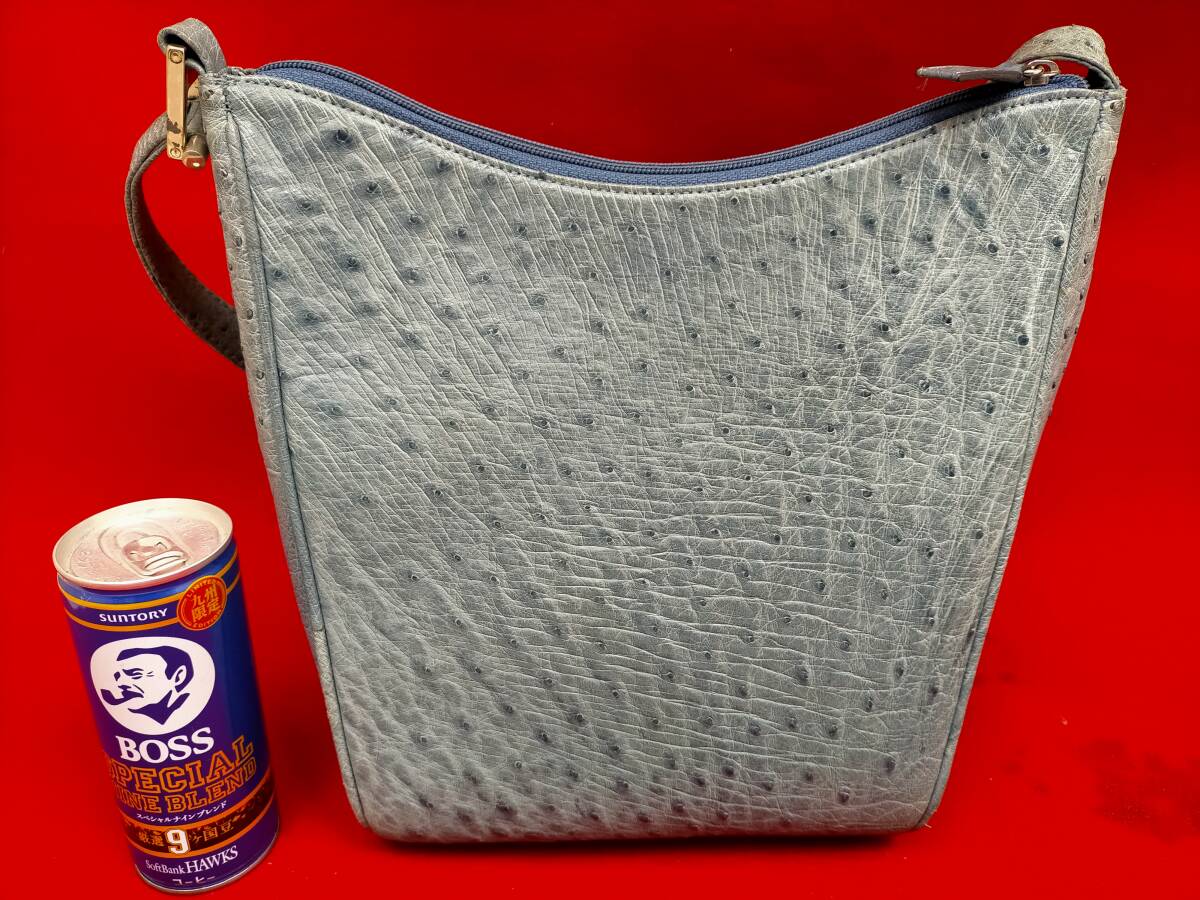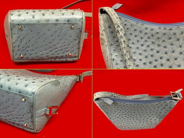 ハンドバッグ オーストリッチ ショルダーバッグ 2WAYタイプ サイドポケット ブルー系・