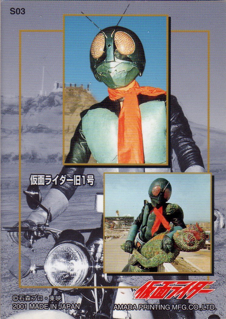 2001年にアマダより発売されたトレカ《 仮面ライダー トレーディングコレクション 1号・2号 編 第2弾 》のスペシャルホロカード《 S03:仮面ライダー旧1号 》単品です。