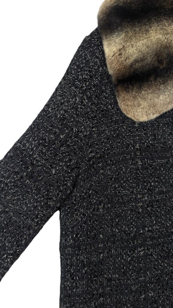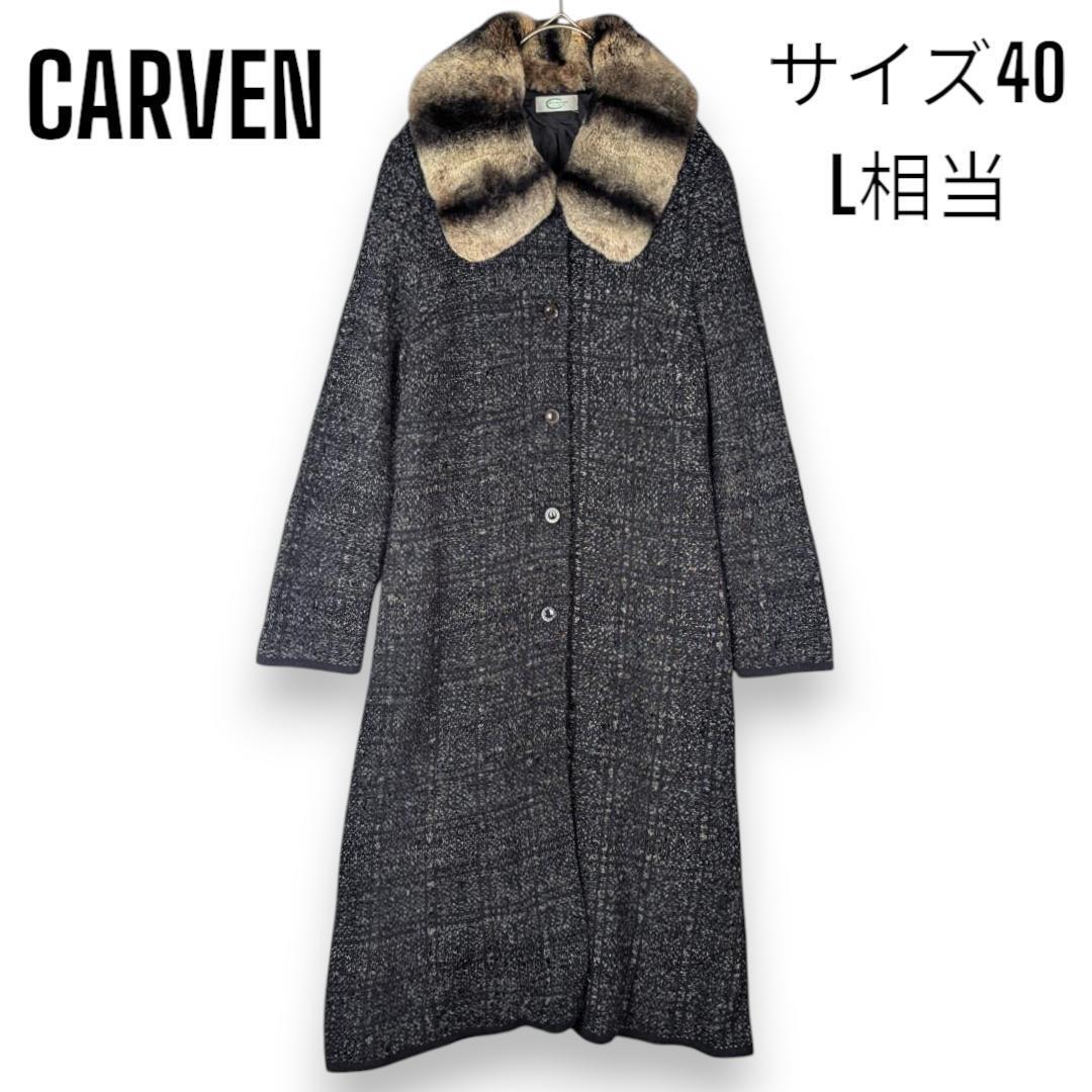 カルヴェン CARVEN レッキスラビットファー ロング コート ニット ステンカラー アウター ブルゾン 40 ブラック系 レディース