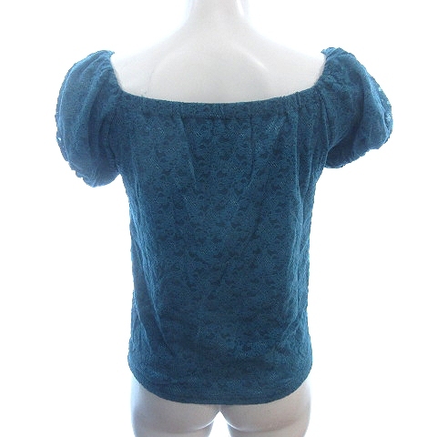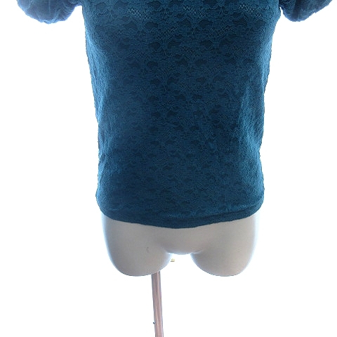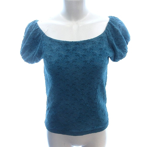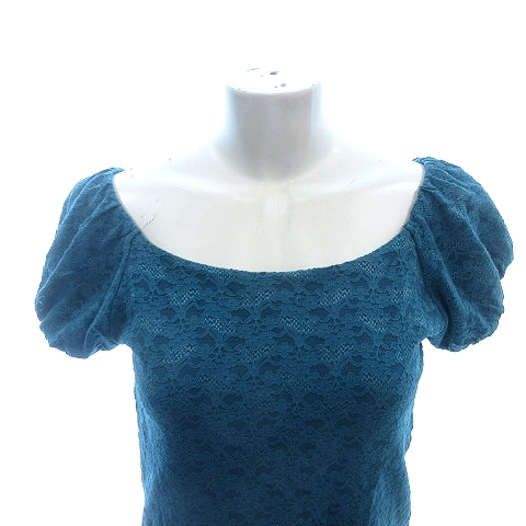 アラマンダ Allamanda カットソー スクープドネック 総レース ナイロン パフスリーブ フレアスリーブ 38 M 青 エメラルドブルー /AU