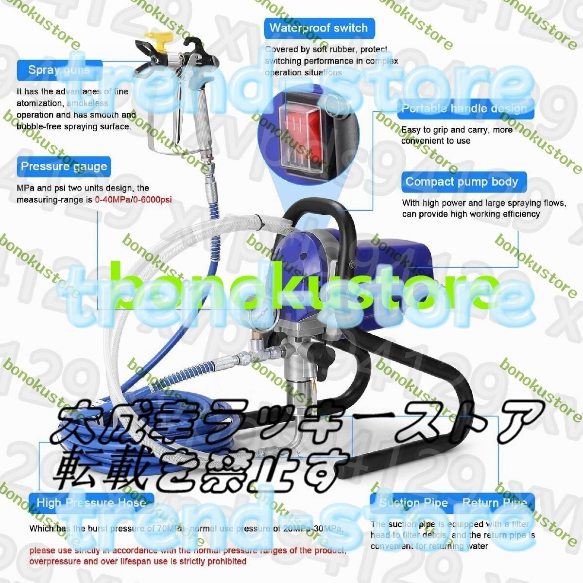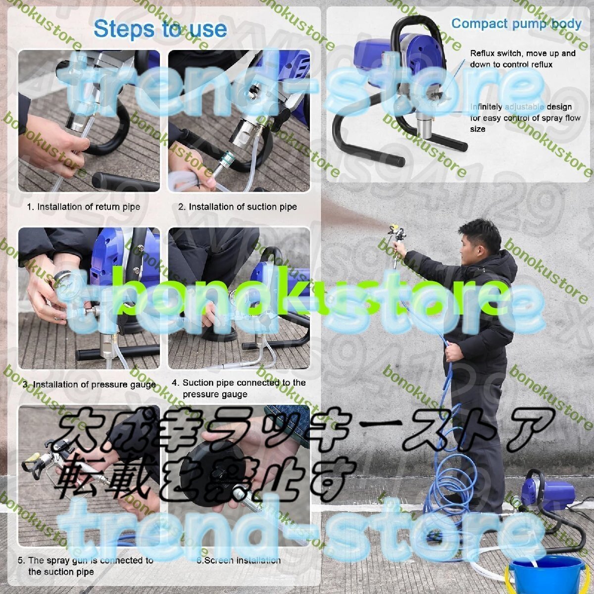 従来の塗料スプレー方法は効率が悪く、塗装された壁は不均一になります。当社のエアレス塗装スプレーをご覧ください。プレミアム素材で作られており、頑丈で耐久性があります。高いパワーとスピードにより、1時間あたり3229~4305平方フィートを噴霧でき、作業効率が向上します。圧力を調整できるため、スプレーをより正確かつ均一に行うことができます。塗装スプレー作業の優れたアシスタントです。仕様材質:プラスチック、銅青色スタイル: モダンアイテム数: 1組み立てが必要: はいマウントタイプ: 自立式モーター出力: 750W電圧: 220V 50HZ効率: 300-400m2/3229-4305ft2/h最大。スプレー流量: 1.2L/min/42Oz/min最大。出力圧力: 20MPa/2900psi最適なスプレー距離: 350-400mm/13.78-15.75in通常使用圧力: 20-30MPa/2900-4351psiホースの長さ: 9 メートル/29.53 フィート電源コードの長さ: 2m/6.56フィートモーター速度: 13000rpm製品サイズ: 29*28*38 センチメートル/11.4*11*15 インチ総重量: 9.4kg/20.72ポンド正味重量: 9kg/19.84ポンドパッケージサイズ: 35*29*45cm/13.78*11.42*17.72インチパッケージは以下を含みます1 * エアレスペイントスプレー1 * 英語マニュアル1 * 29.53フィートペイントホース使用するすべての付属品