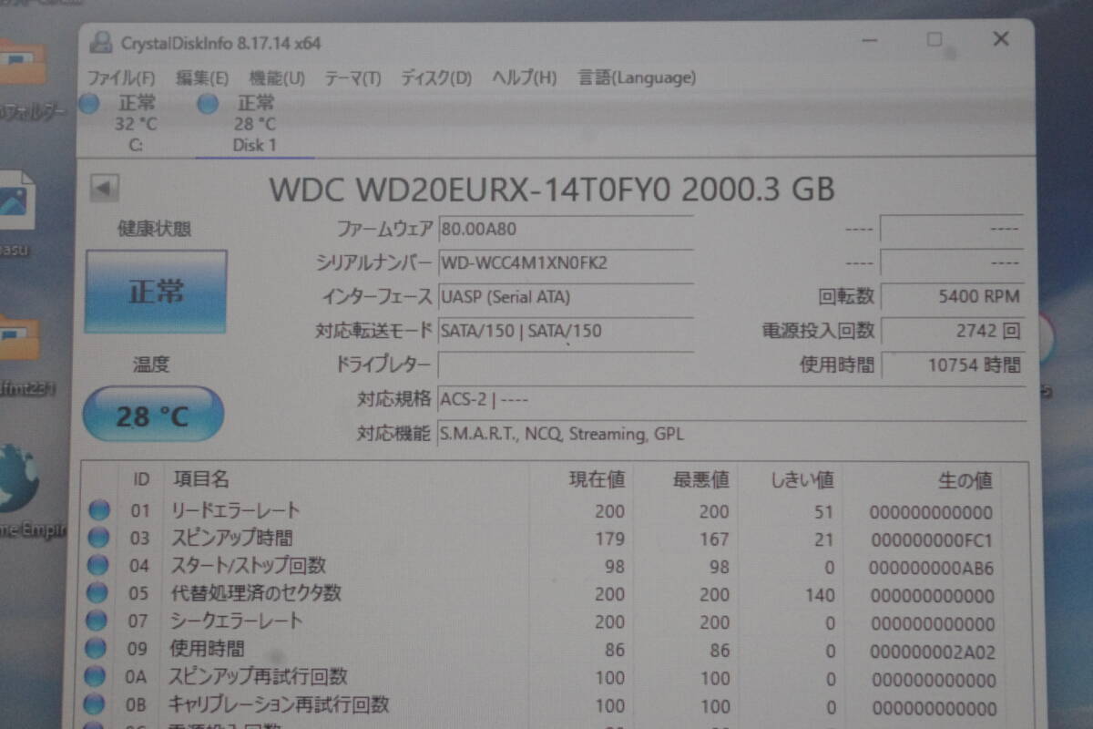 HDDは、2TBのWD (HDDは画像 3番のクリスタルインフォでご確認ください。)