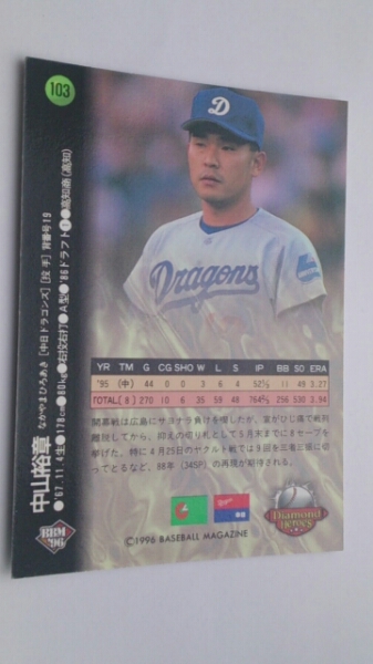 中日ドラゴンズ中山裕章!1996BBMダイアモンドヒーローズ103元横浜大洋ホエールズ |