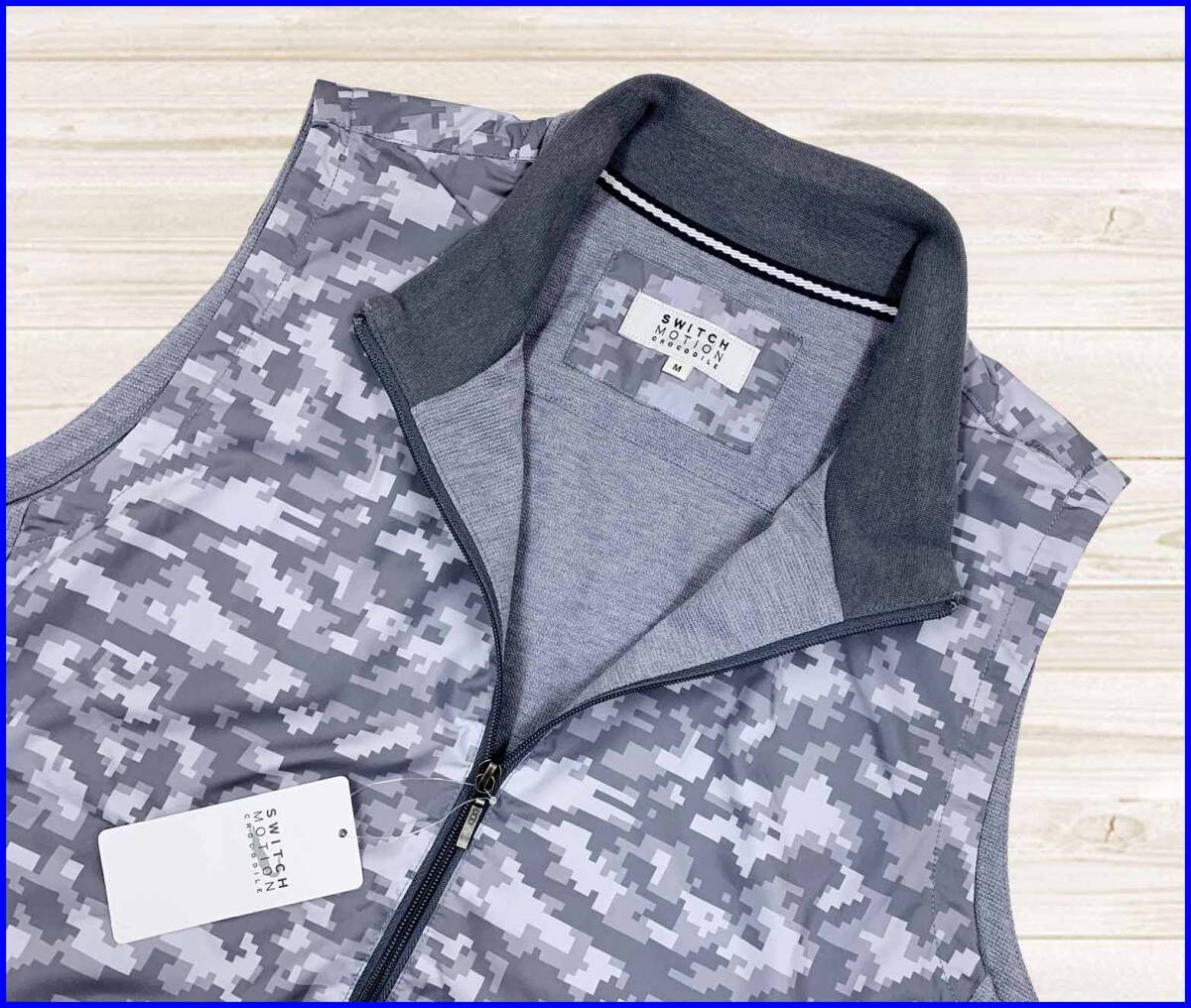 【国内正規品】75%OFF◆スウィッチモーションクロコダイルCrocodile◆秋春デジタルカモ迷彩ジップベストジャケット◆グレーM定価:11,000円